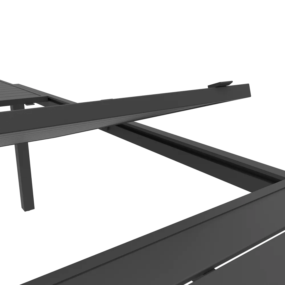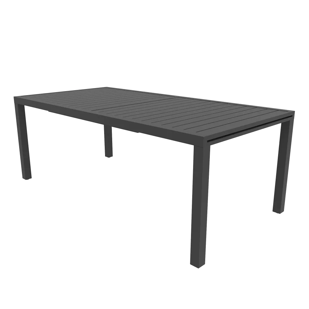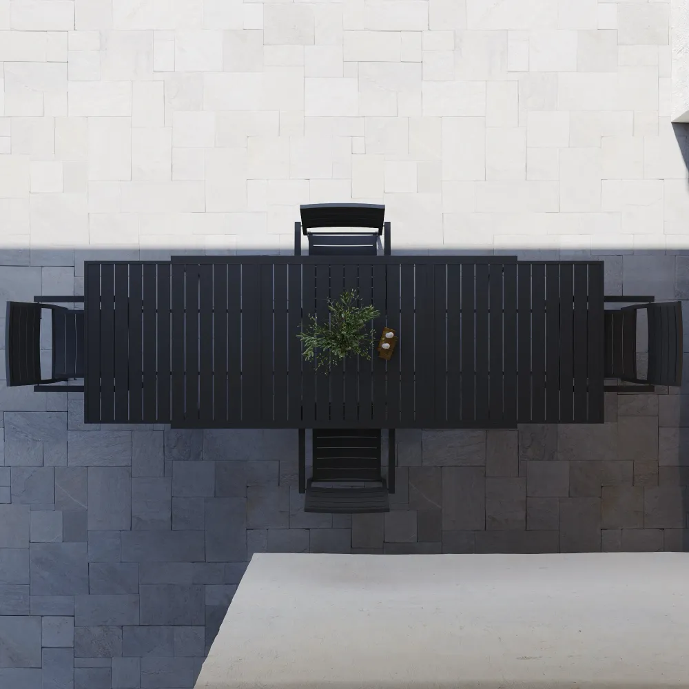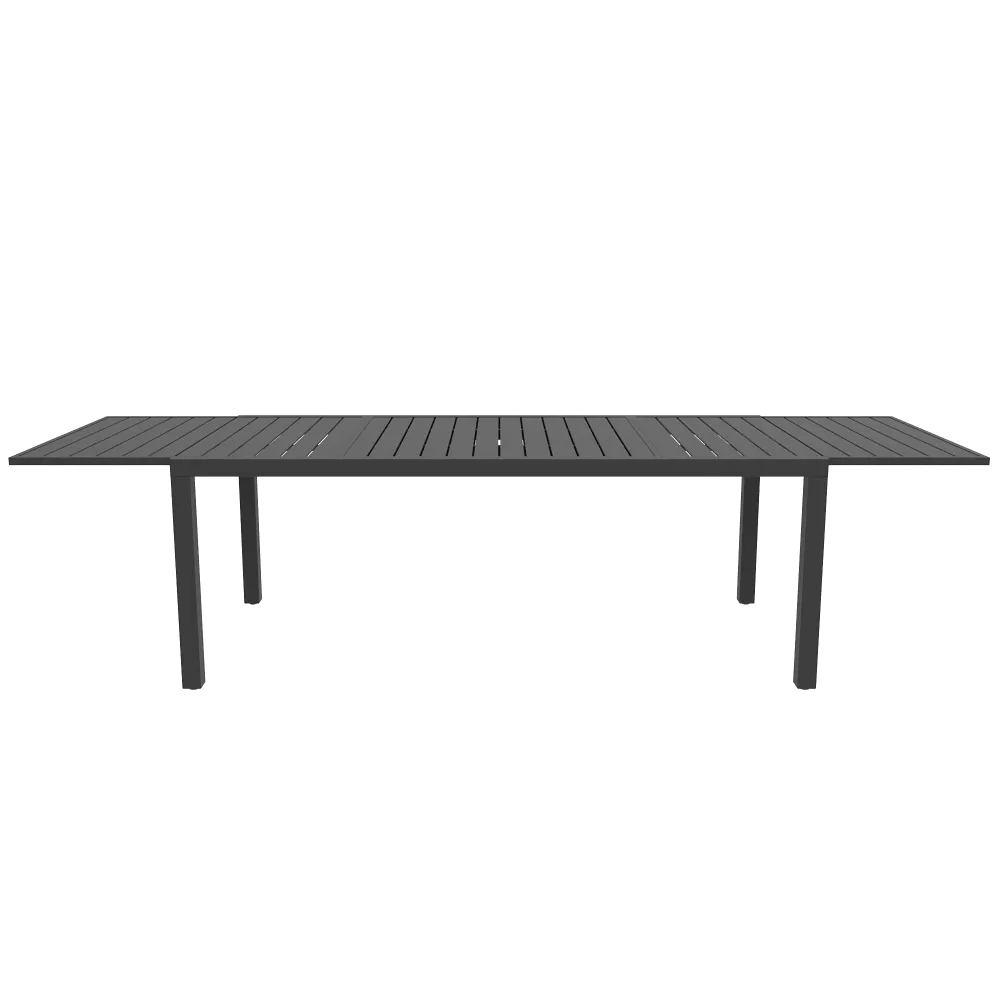 Vivi l'esperienza del "grande formato" all'aria aperta con questo set da pranzo in alluminio grigio, progettato per chi ama ospitare senza limiti. Il cuore della composizione è l'imponente tavolo allungabile , che unisce la praticità di una struttura moderna alla libertà di accogliere compagnie numerose. Partendo da una dimensione base di 200 cm, già generosa per l'uso quotidiano, il tavolo si estende fino a raggiungere i 300 cm, offrendo una superficie spettacolare capace di ospitare comodamente fino a 12 persone.