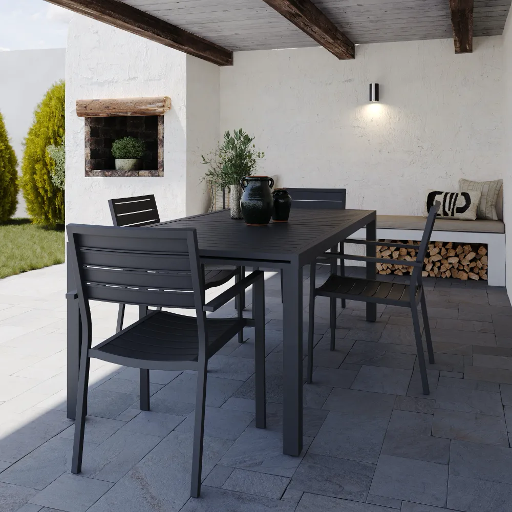 Set da esterno grigio con tavolo allungabile 200/300x75cm e 4 sedie in alluminio | Zenor