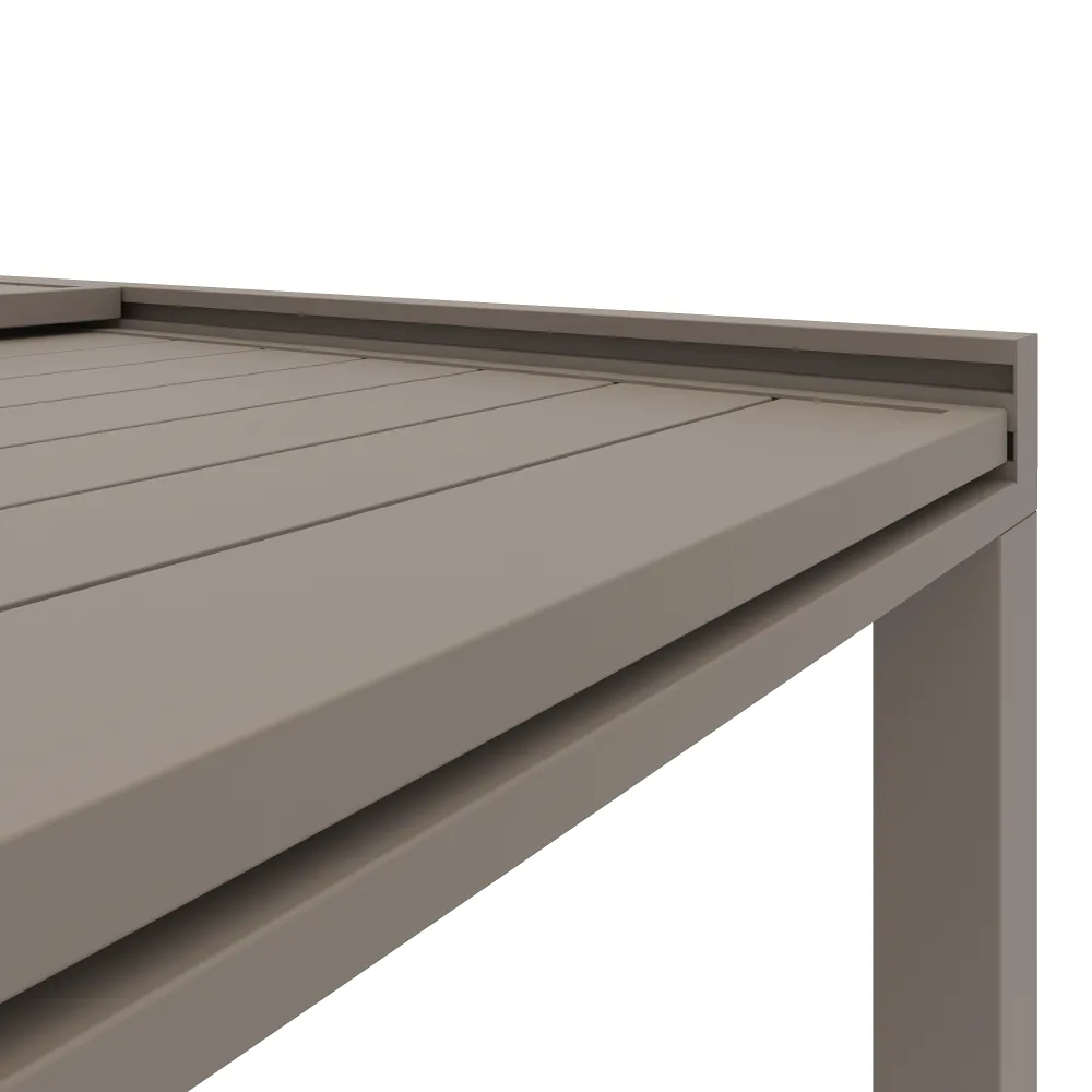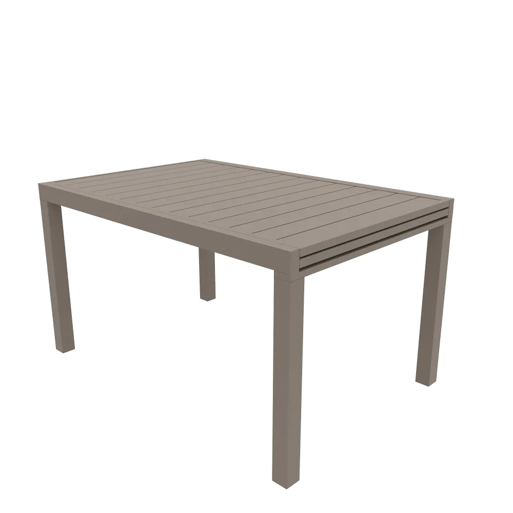 Arreda il tuo giardino con la massima coerenza stilistica grazie a questo set da pranzo completo in alluminio tortora, dove funzionalità e design geometrico si fondono perfettamente. Il protagonista è il tavolo allungabile Marel, concepito per adattarsi a ogni occasione: dalla configurazione standard di 135 cm, ideale per i pranzi quotidiani in famiglia, si estende fino a raddoppiare la sua lunghezza a 270 cm. Grazie alla pratica prolunga interna a scorrimento, è possibile ospitare fino a 10 persone, offrendo una superficie ampia senza l'ingombro di tavoli aggiuntivi.