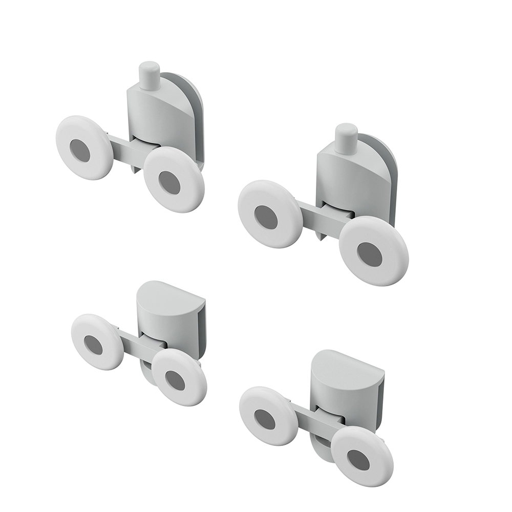 Set di roller compatibili con il modello Grenada, composta da due roller per la parte superiore e due per la parte inferiore. Garantisce uno scorrimento fluido e silenzioso delle ante.