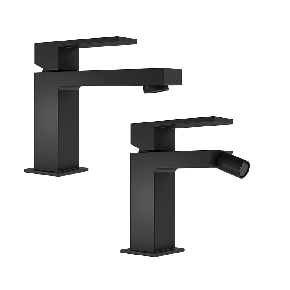 Set miscelatore lavabo e bidet senza scarico nero opaco | Hedy