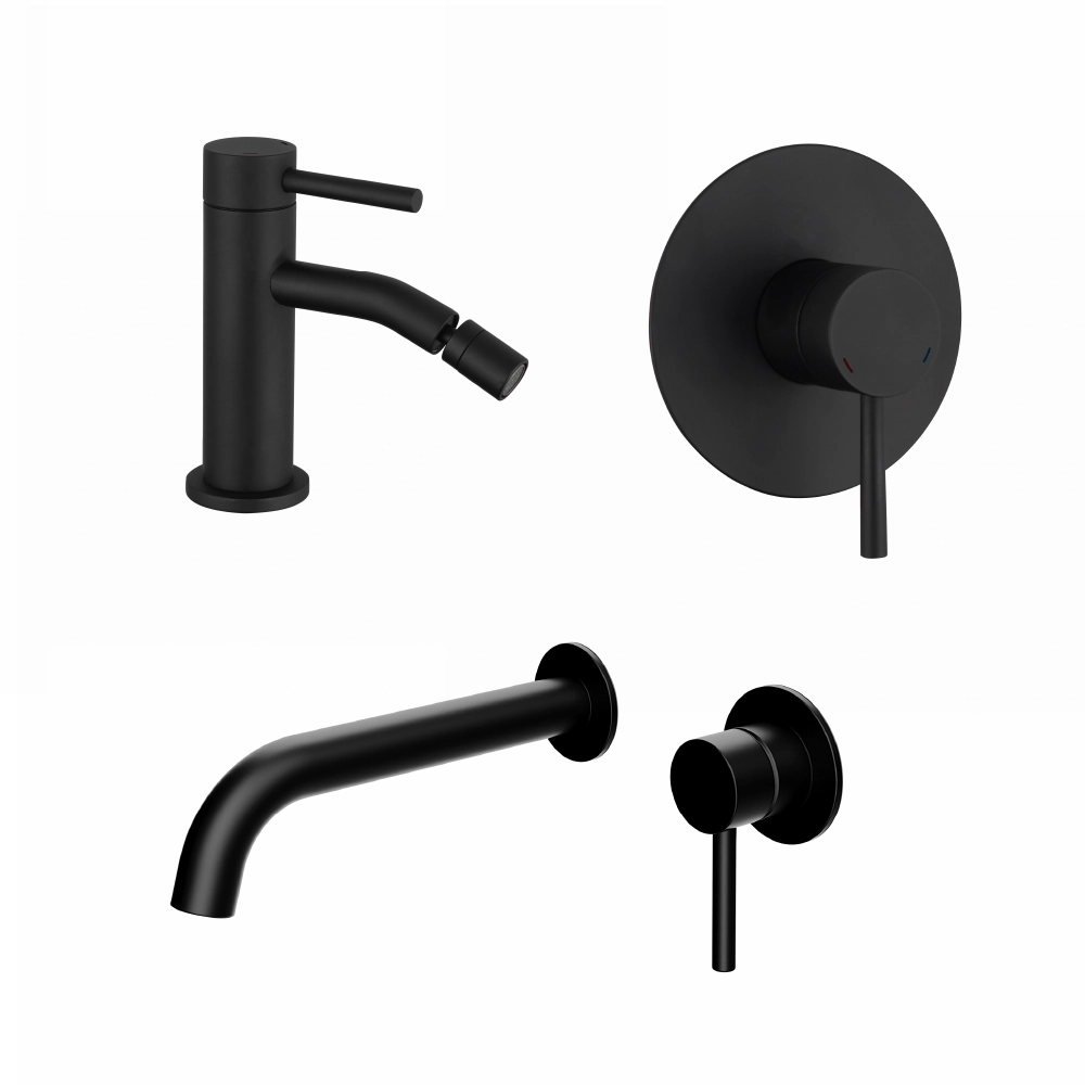 Questo set caratterizzato dalla finitura nero opaco, è un'ottima scelta per chi desidera un bagno moderno e sofisticato. E' composto da un miscelatore lavabo ad incasso, un miscelatore bidet ed uno ad incasso monocomando per doccia, che permette di regolare facilmente e con precisione il flusso e la temperatura dell'acqua.