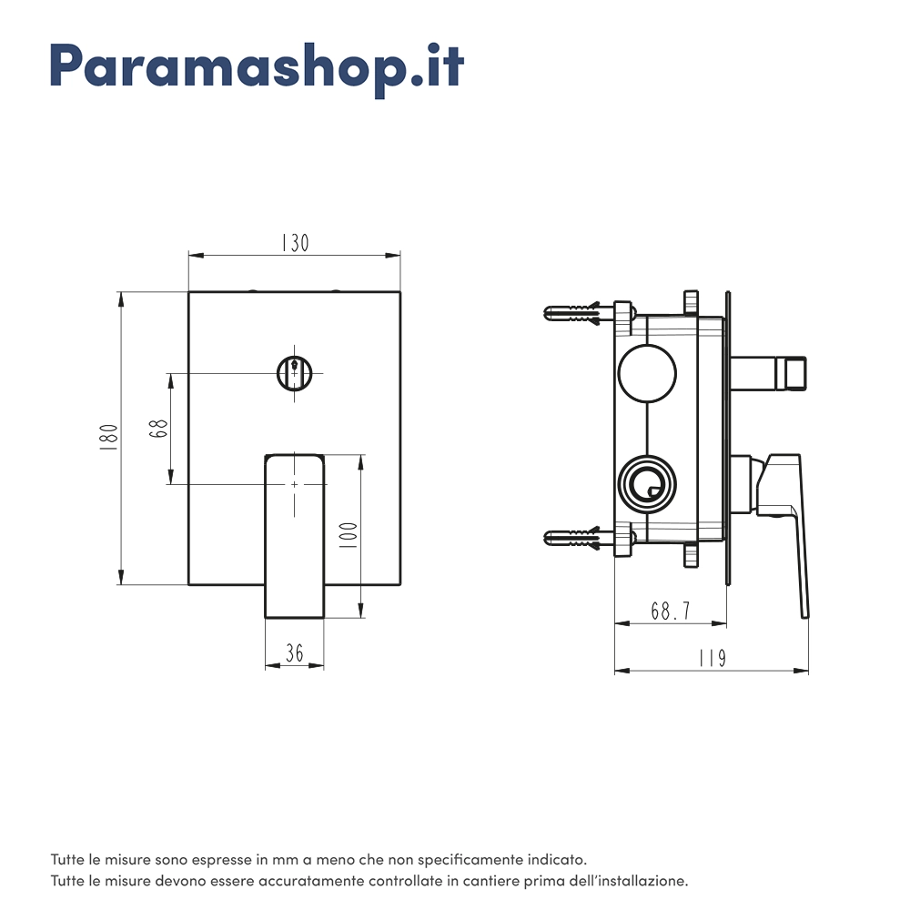 E' dotato di un miscelatore lavabo alto, un miscelatore bidet e un miscelatore doccia con deviatore da incassare nel muro, per un look pulito e minimalista. Sono tutti realizzati in ottone con una finitura cromata di elevata fattura (NSS 200hrs), che dona un tocco di luminosità e facilita la pulizia.