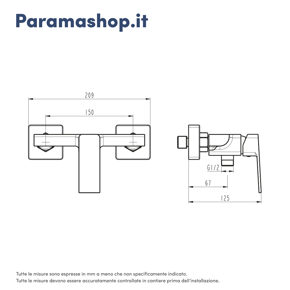 E' dotato di un miscelatore lavabo alto, un miscelatore bidet e un miscelatore doccia esterno, per un look pulito e minimalista. Sono tutti realizzati in ottone con una finitura cromata di elevata fattura (NSS 200hrs), che dona un tocco di luminosità e facilita la pulizia.