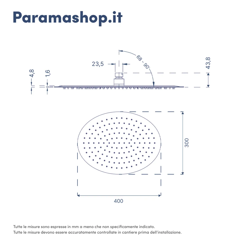 Il soffione doccia ovale 40x30 cm è realizzato in acciaio inox di alta qualità e rifinito con una brillante finitura cromata, che garantisce resistenza e un design elegante.