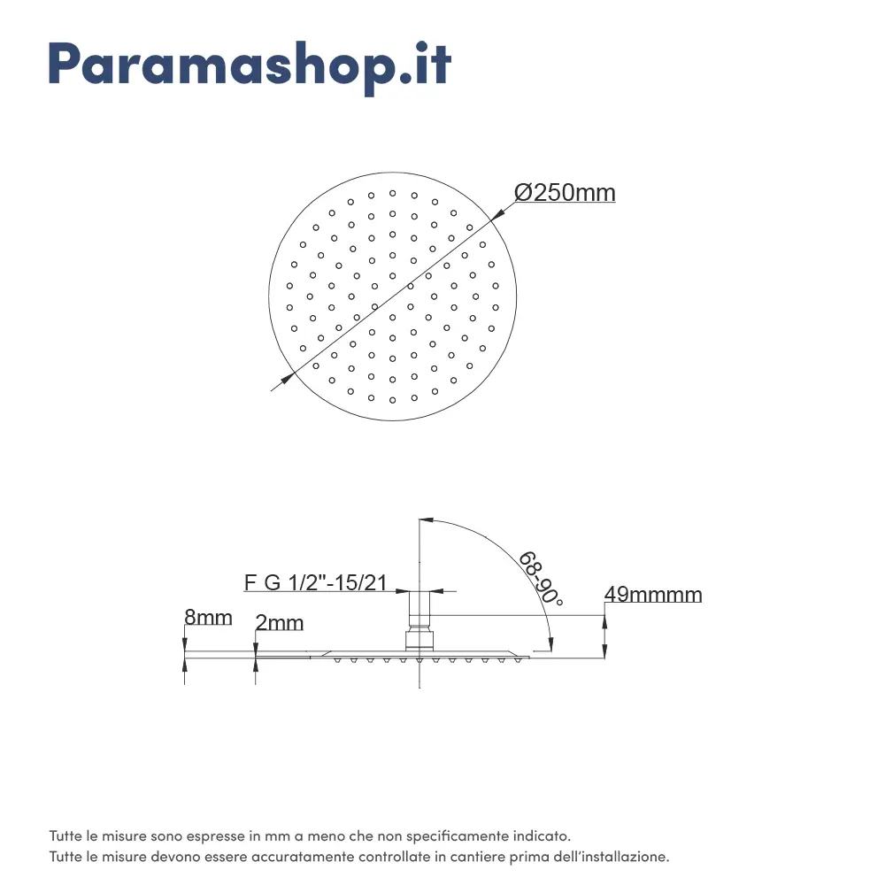 Il suo corpo dotato di un attacco da ½” in ottone garantisce un’installazione universale mentre, grazie al suo snodo regolabile, è possibile orientare il soffione con l'inclinazione preferita, direzionando così il getto d'acqua.