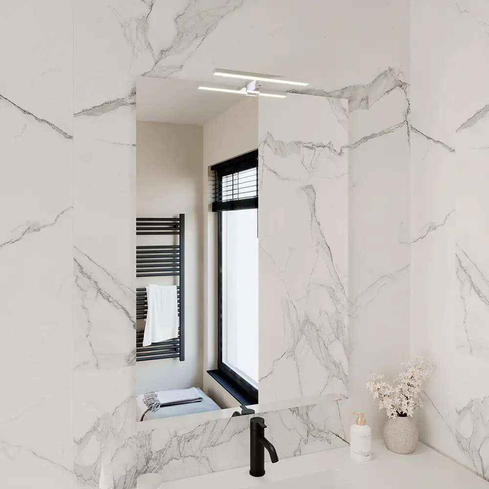 E' inclusa all'interno della confezione del prodotto una pratica applique led delle dimensioni di 30 cm con finitura cromata. Questa applique presenta una luce bianca neutra da 4000 K.