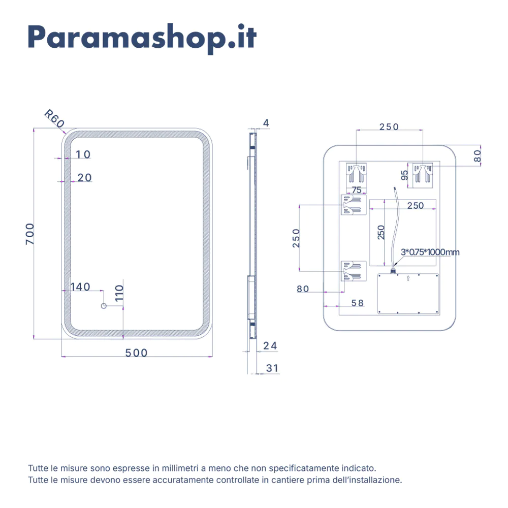 Il comfort quotidiano è elevato dalla presenza di un sistema antiappannamento che mantiene la superficie nitida anche dopo la doccia. Tutte le funzioni, dall'accensione alla regolazione della luce, sono gestite con semplicità attraverso un discreto interruttore touch-screen integrato nella superficie.