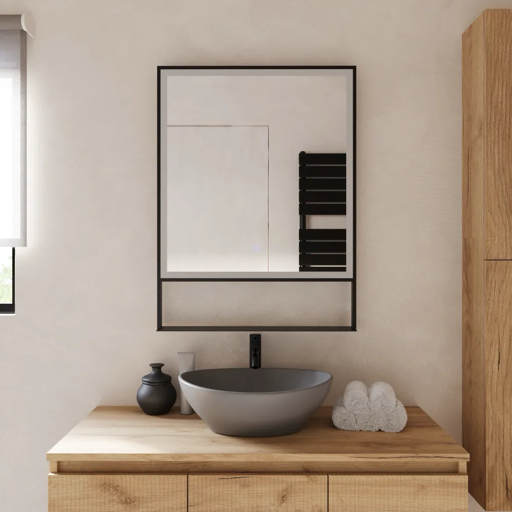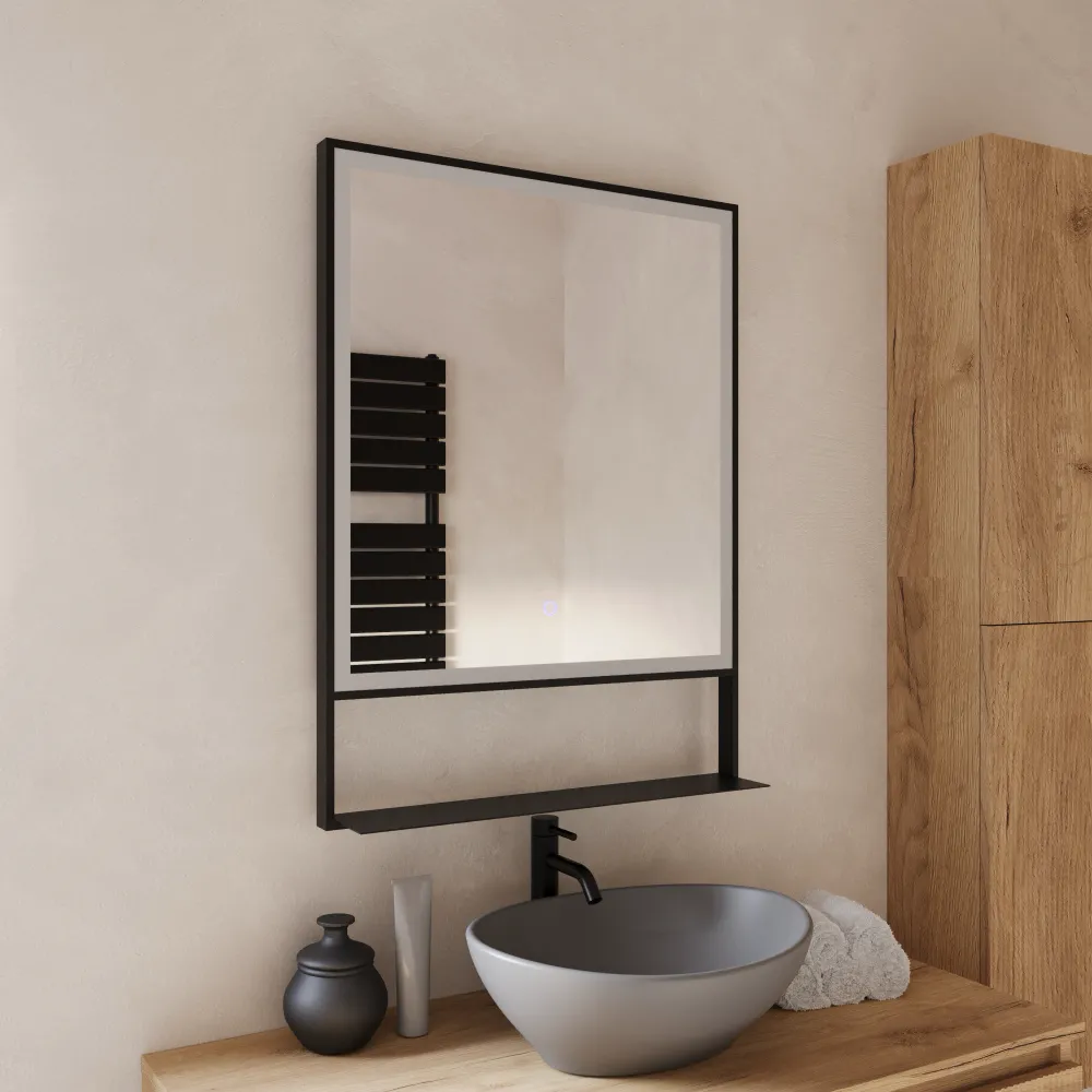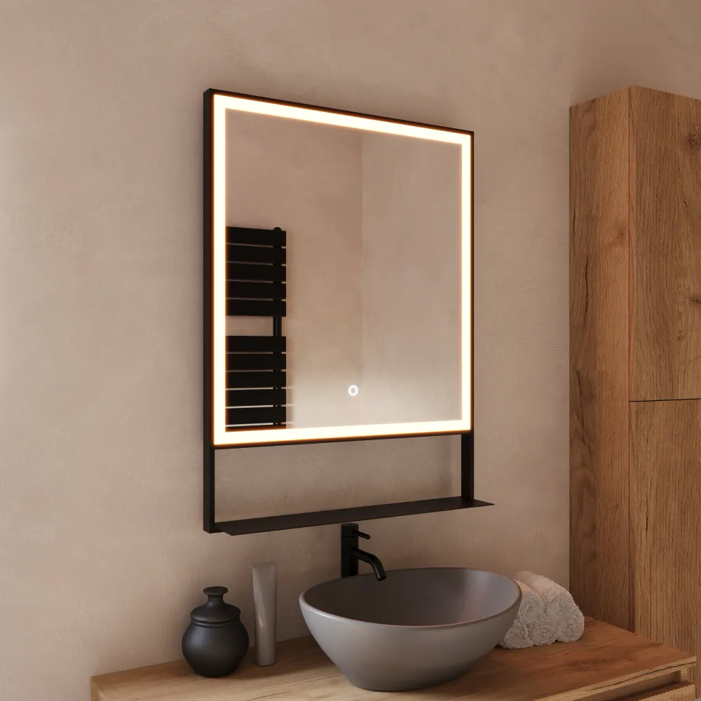Specchio led 70x100cm con cornice nero opaco luce calda, neutra, fredda antiappannamento| Merak