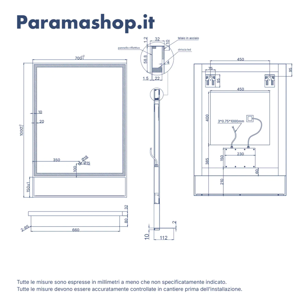 Per un comfort quotidiano senza compromessi, è inclusa una funzione riscaldante che elimina l'appannamento della superficie dopo docce o bagni caldi. Tutte le funzionalità sono gestibili con un semplice tocco grazie all'interruttore touch screen posizionato discretamente sullo specchio.