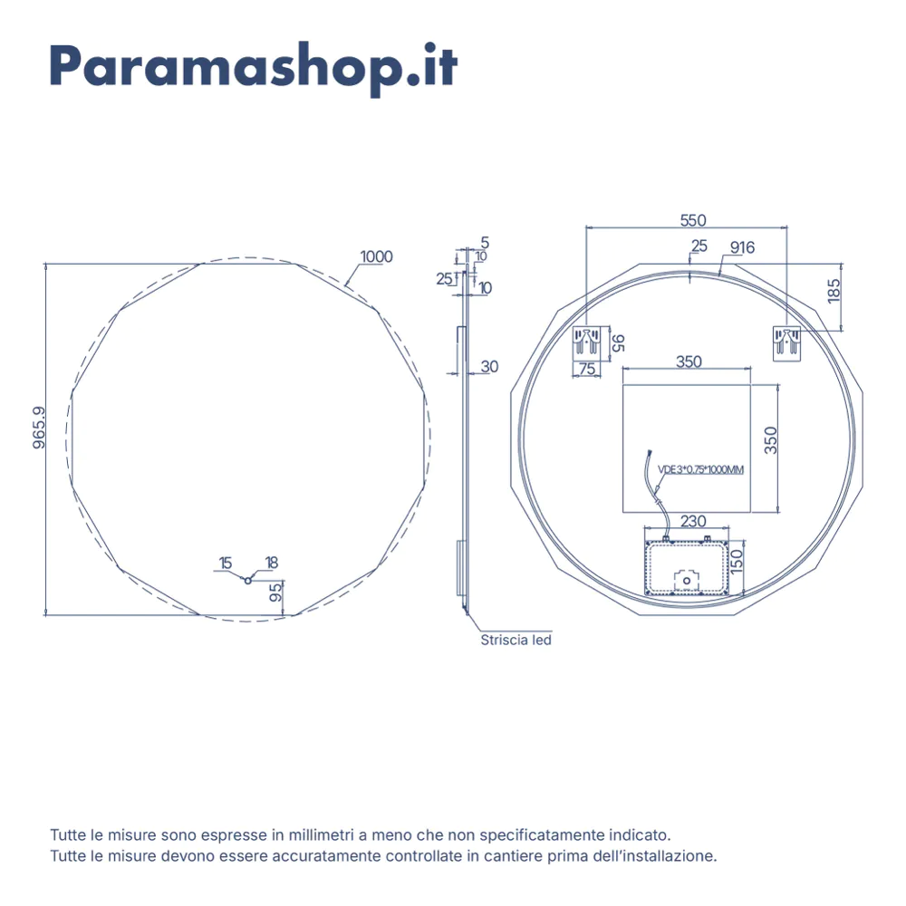 Realizzato con specchio da 5 mm, garantisce durata nel tempo e massima resistenza all’umidità. La struttura è supportata da strisce LED su profilo in alluminio, protette da un tubo trasparente che ne assicura luminosità e protezione.