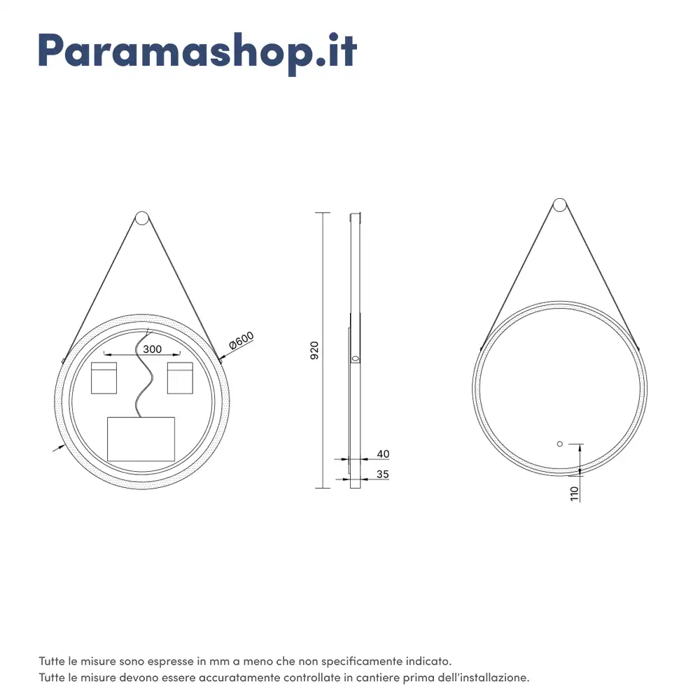 Lo specchio tondo con cornice e cinta neri è disponibile in due misure: 60 e 80 cm. Scegli la misura che più si adatta ai tuoi spazi o ai tuoi gusti.