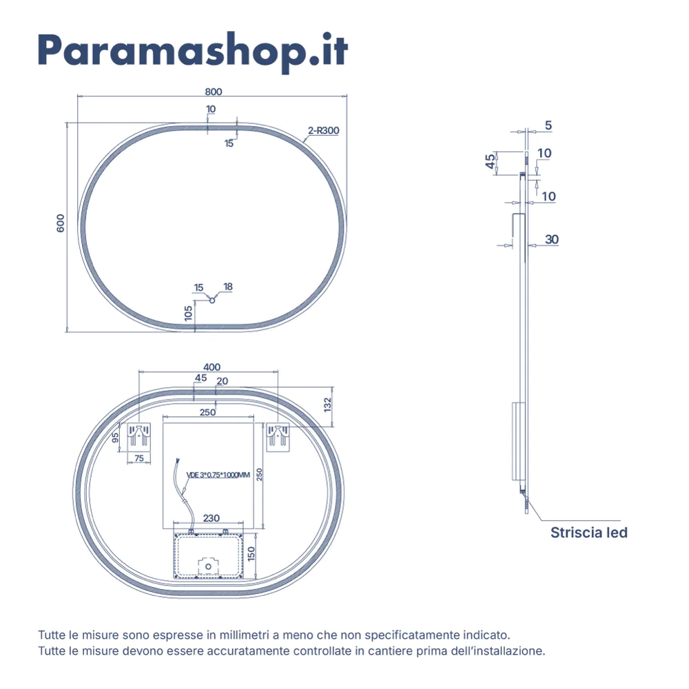 Specchio led ovale 60x80cm luce calda, neutra e fredda e funzione anti-appannamento | Yed