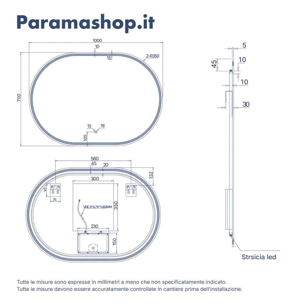 Specchio led ovale 70x100cm luce calda, neutra e fredda e funzione anti-appannamento | Yed