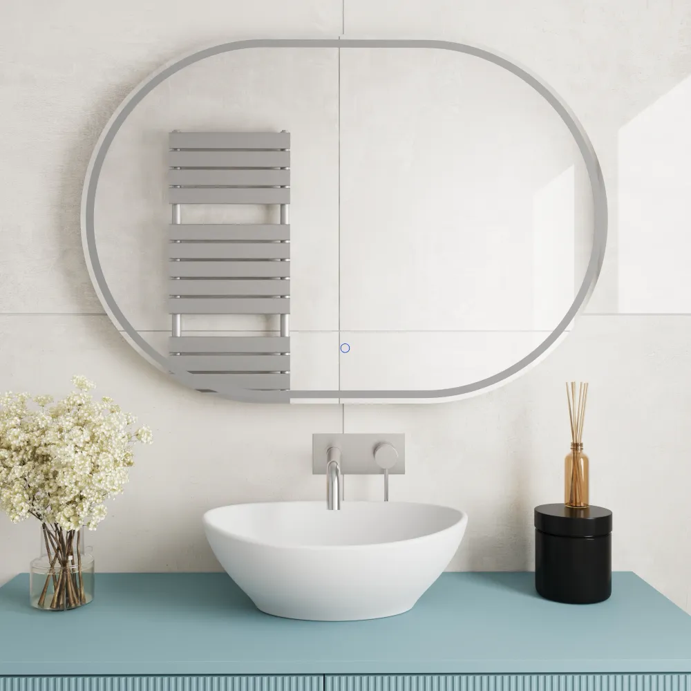 Il Modello Yed 70x90 porta eleganza e stile in bagno con la sua forma ovale distintiva, che conferisce morbidezza e armonia all’ambiente.