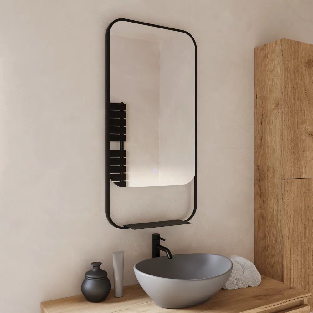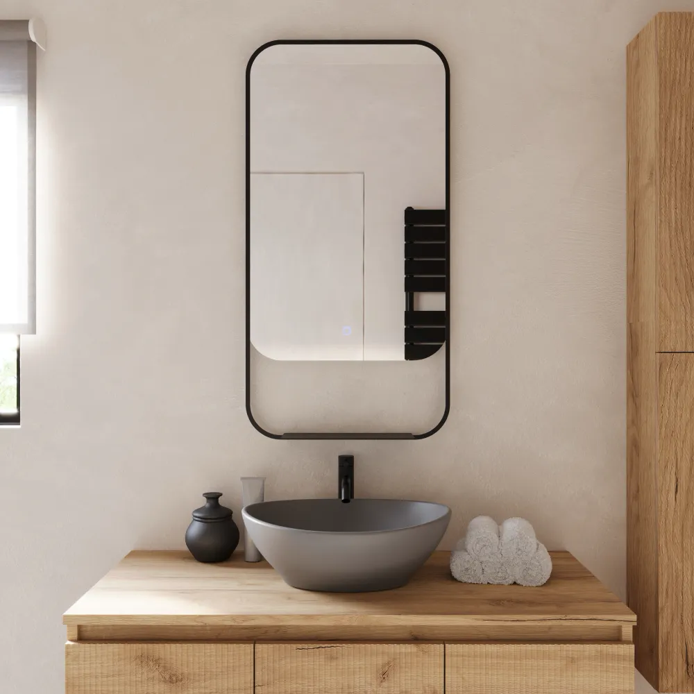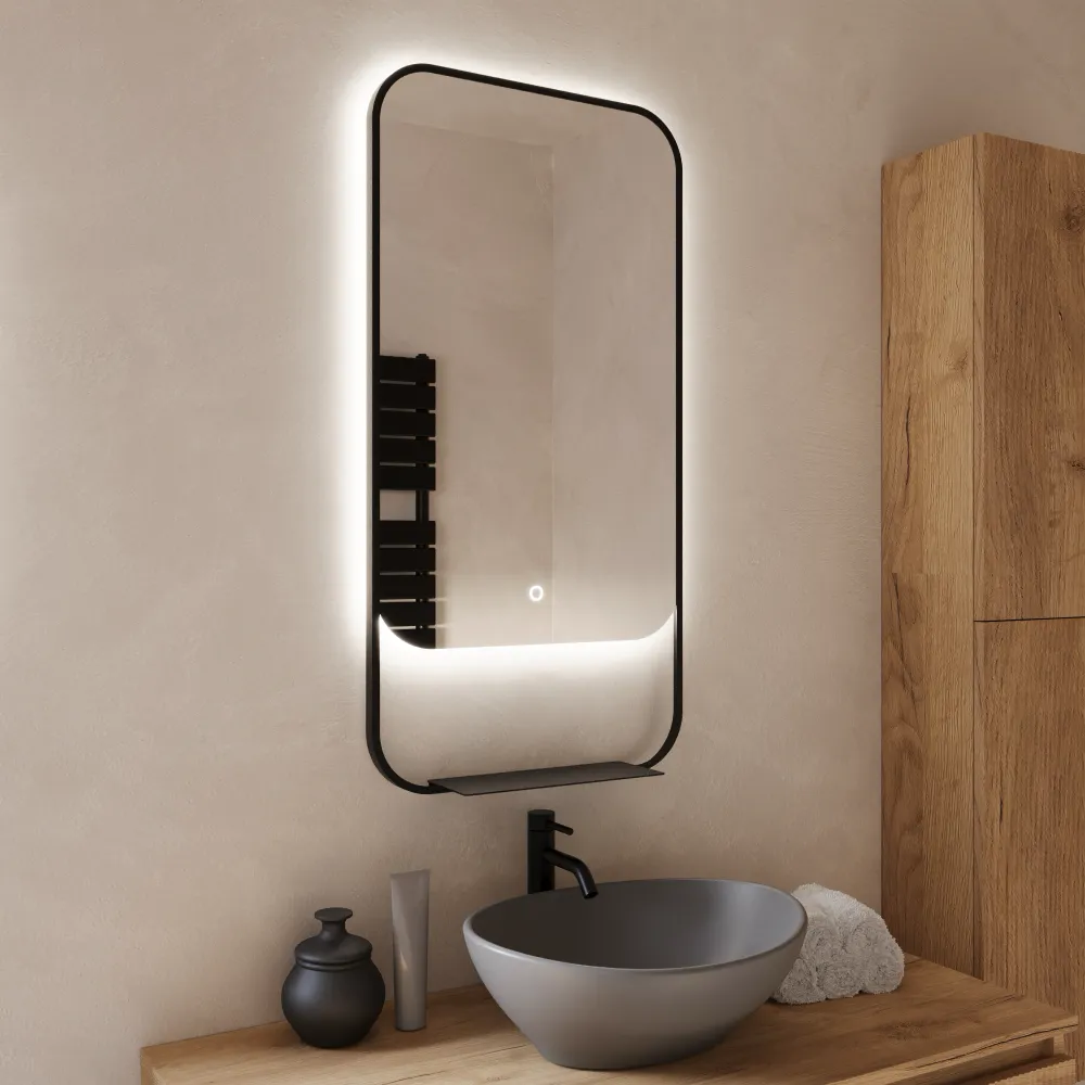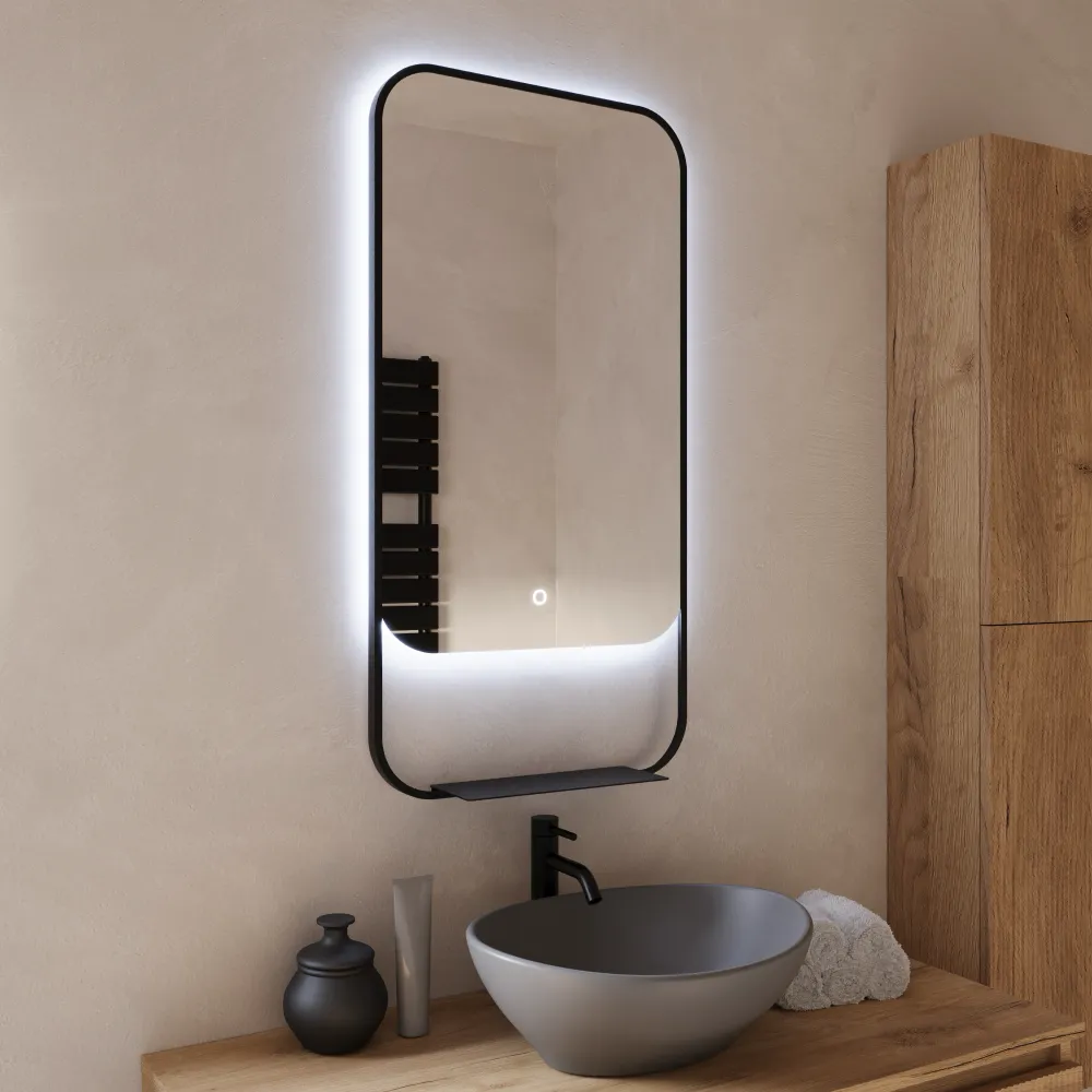 Specchio led retroilluminato 46x90cm con cornice nero opaco luce calda, neutra, fredda e anti-appannamento | Cetus