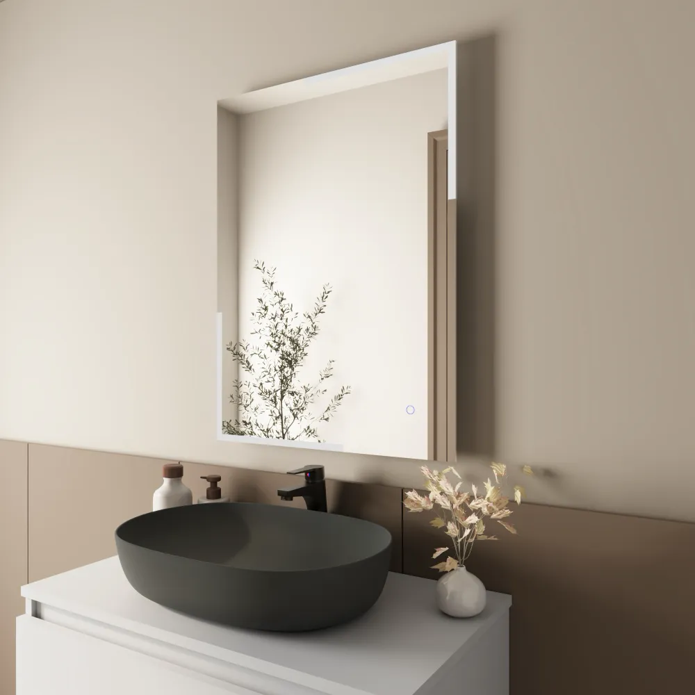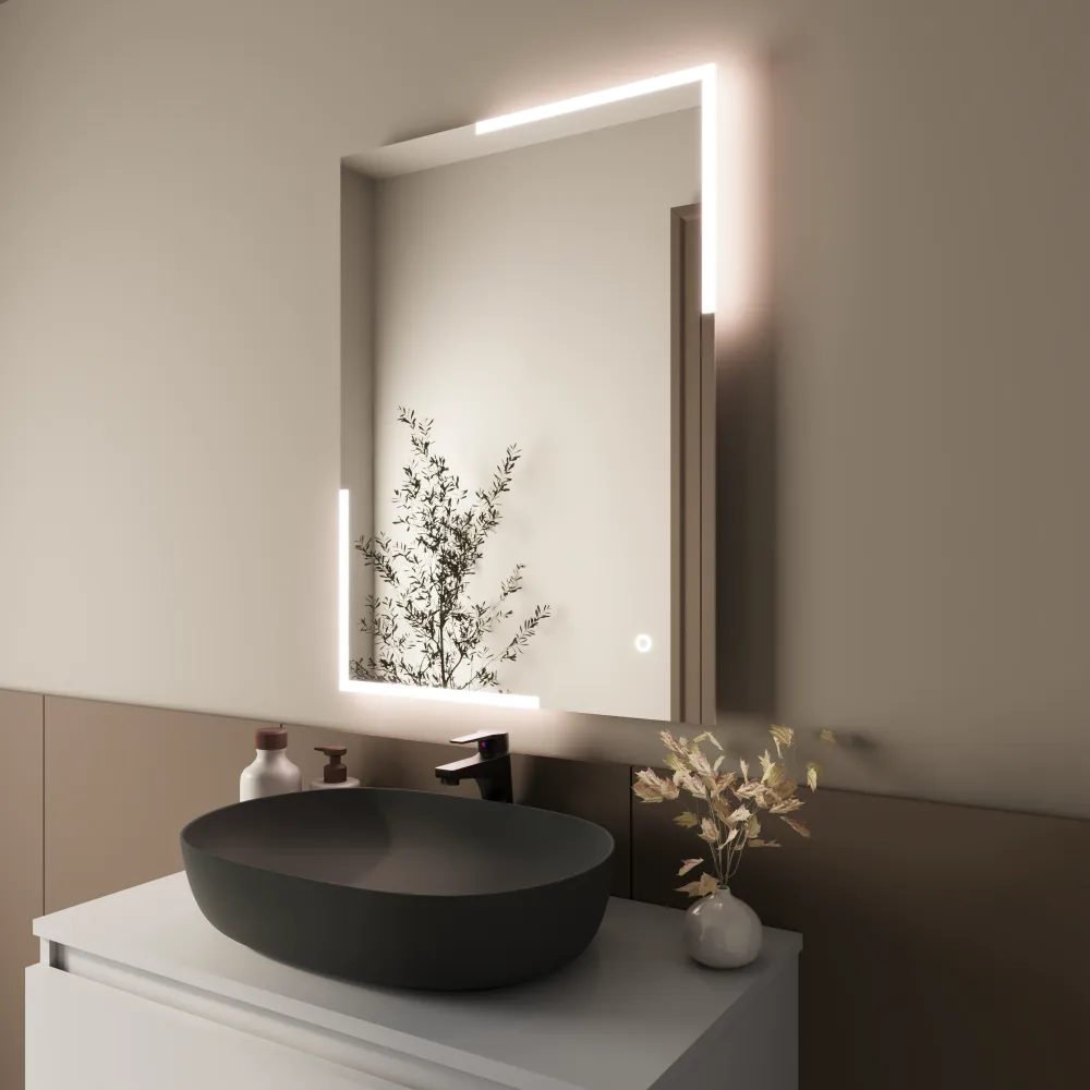 Lo specchio LED 50x70 cm modello Rigel è realizzato con vetro da 5 mm e dotato di pellicola di sicurezza sul retro, garantendo massima durata e protezione, sicurezza e affidabilità nel tempo.