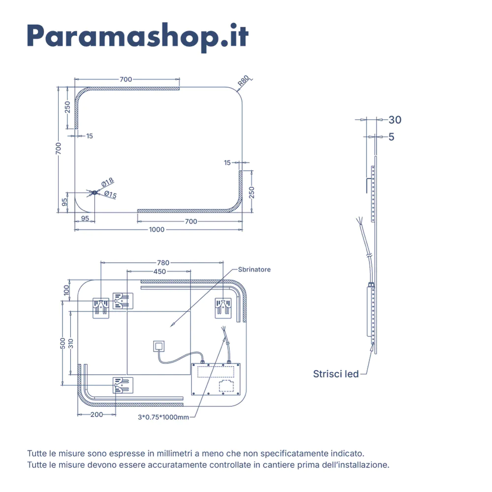 Il design di Atlas non è solo funzionale: il vetro da 5 mm copper-free con pellicola di sicurezza, le strisce LED integrate su supporto in alluminio e il tubo protettivo trasparente garantiscono durata e performance ottimali. Grazie al heating pad, lo specchio resta sempre limpido, mentre il Single Touch Switch semplifica l’uso di tutte le funzioni. L’installazione reversibile offre massima flessibilità, permettendo di montare Atlas sia in verticale che in orizzontale.