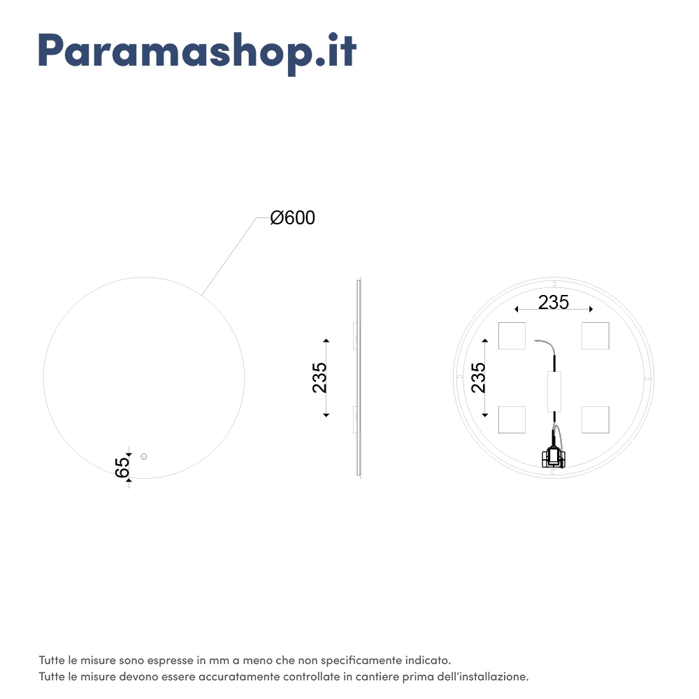 Specchio led tondo Ø 60 cm 3 mm retroilluminato luce fredda con sensore touch-screen | Alcor