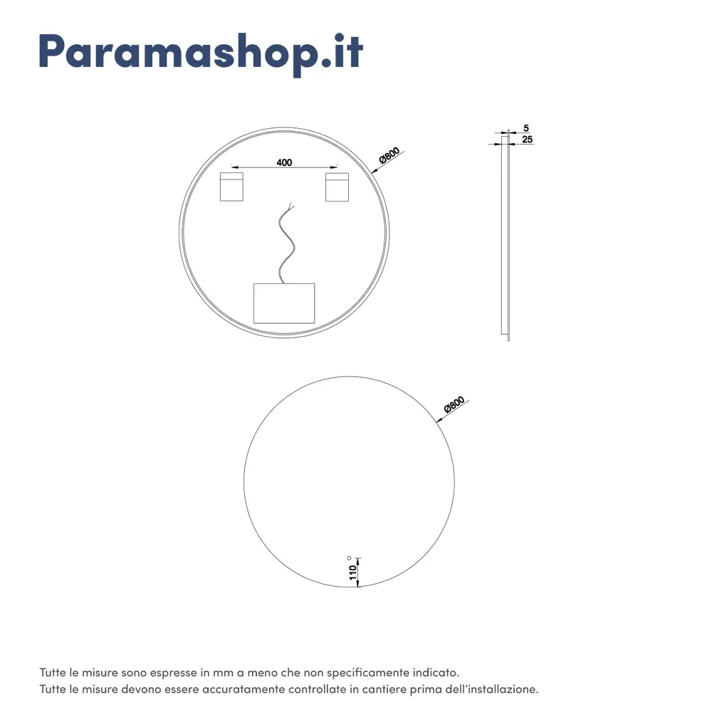 Specchio led tondo Ø 80 cm retroilluminato luce calda/fredda/neutra con sensore touch-screen