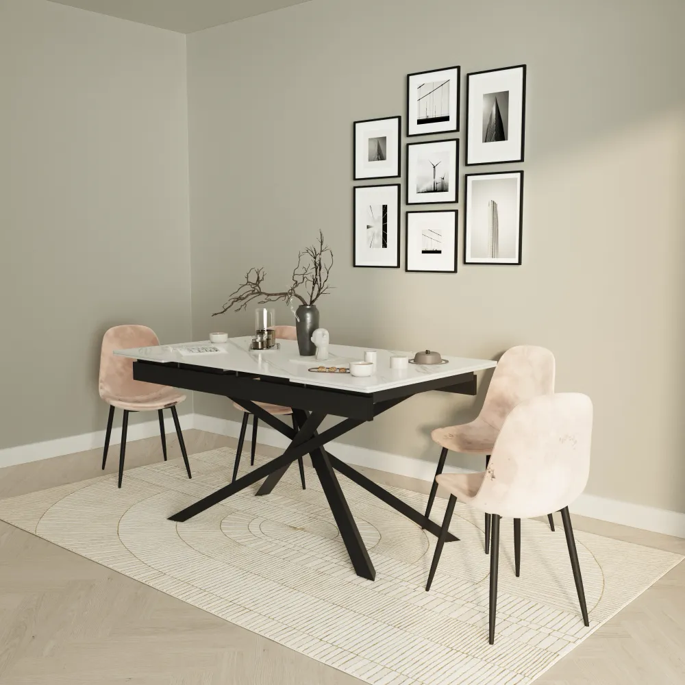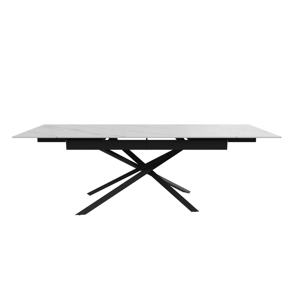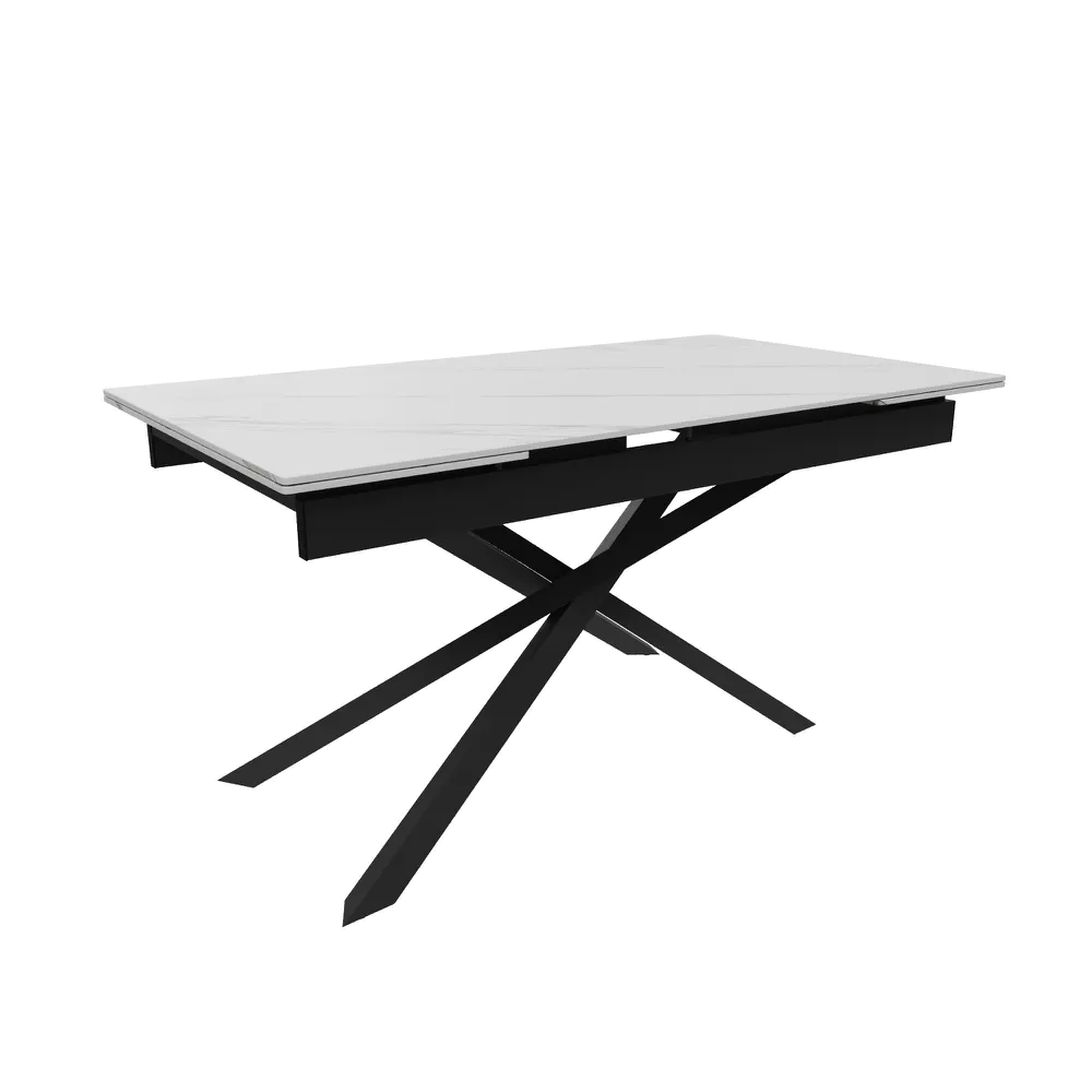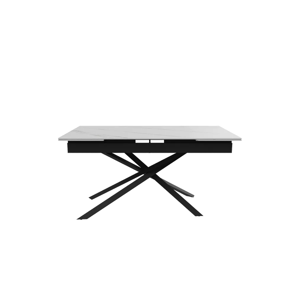 Tavolo allungabile 160-240x90cm top in ceramica effetto marmo e gambe incrociate in acciaio nero | Kari