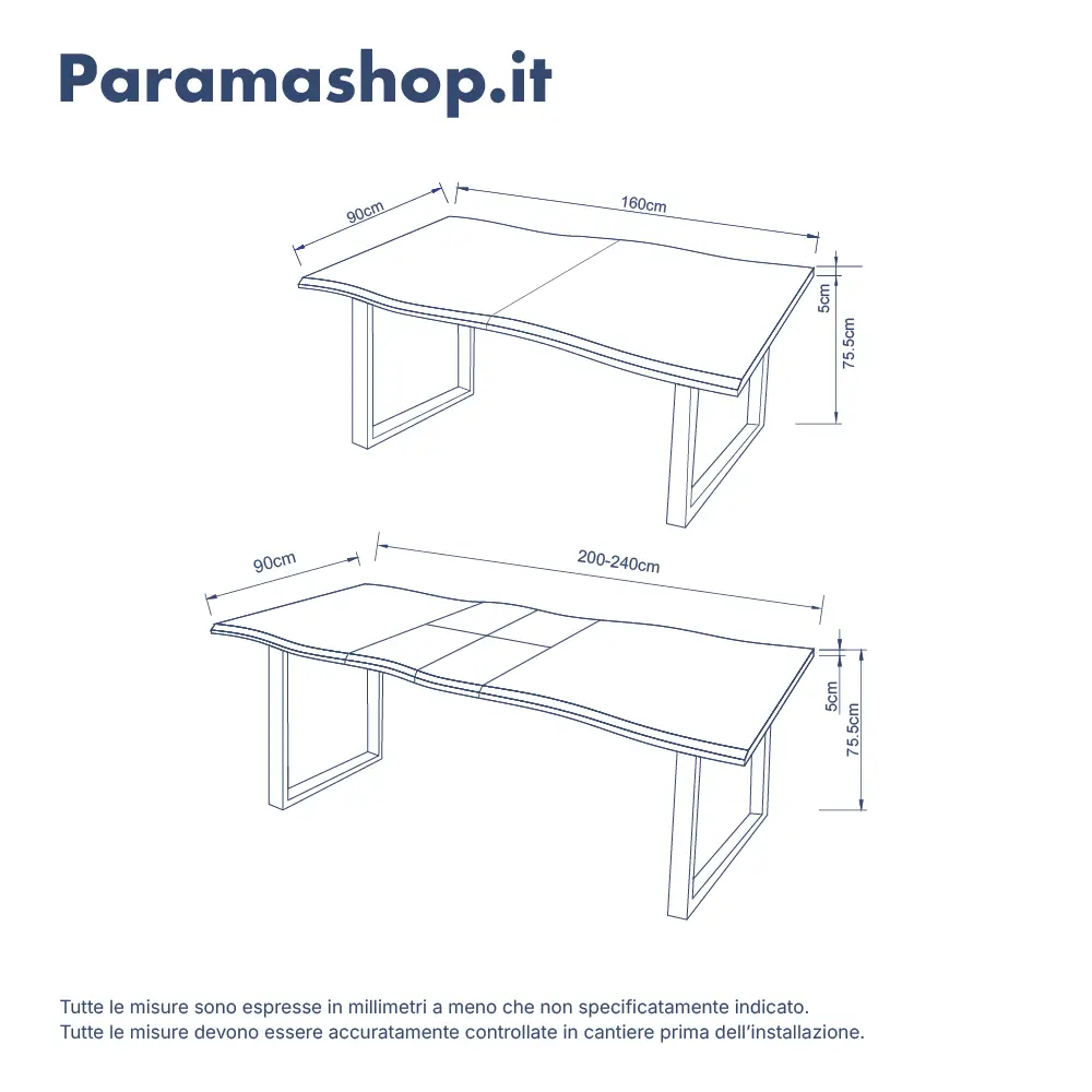 Progettato per essere tanto pratico quanto d'impatto, il tavolo Lars è allungabile. Grazie a due estensioni da 40 cm, la sua lunghezza può passare da 160 cm a 200 cm, fino a un massimo di 240 cm. Questa versatilità lo rende la soluzione ideale sia per l'uso quotidiano che per ospitare un numero maggiore di persone, adattandosi facilmente a ogni esigenza di spazio.