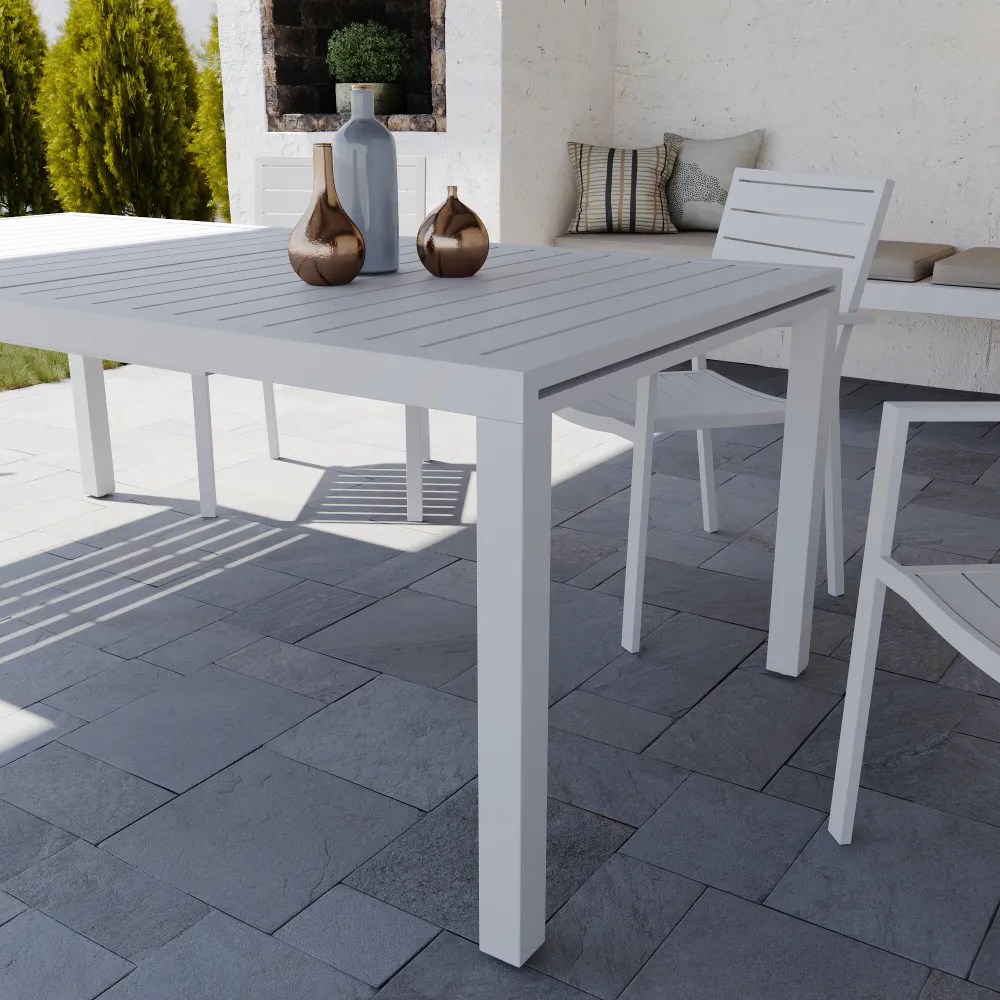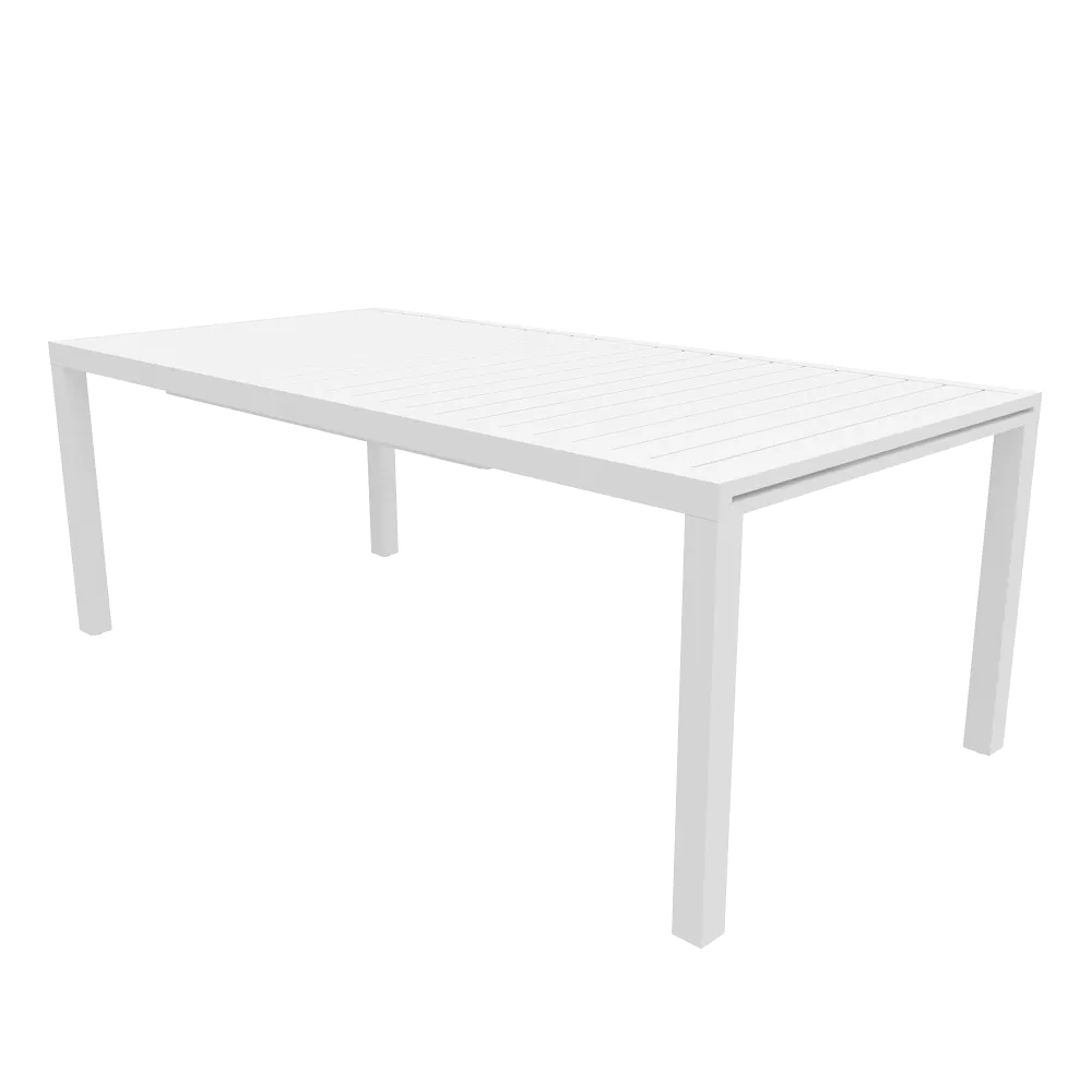 Tavolo da esterno rettangolare in alluminio bianco allungabile 200/300x100x75cm con top a doghe | Marel