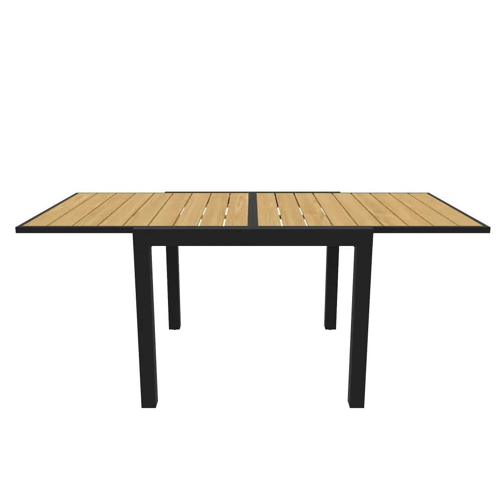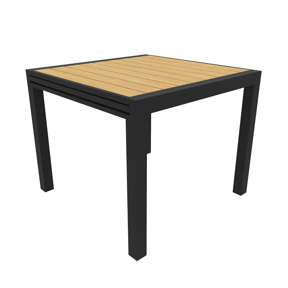 Il tavolo allungabile Camir unisce funzionalità e stile per adattarsi a ogni occasione all'aperto. In configurazione standard misura 90 cm, ideale per pranzi quotidiani in famiglia in spazi contenuti. Grazie al pratico meccanismo a scorrimento, il tavolo raddoppia la sua lunghezza arrivando a 180 cm, offrendo una superficie ampia capace di ospitare comodamente fino a 8 persone.