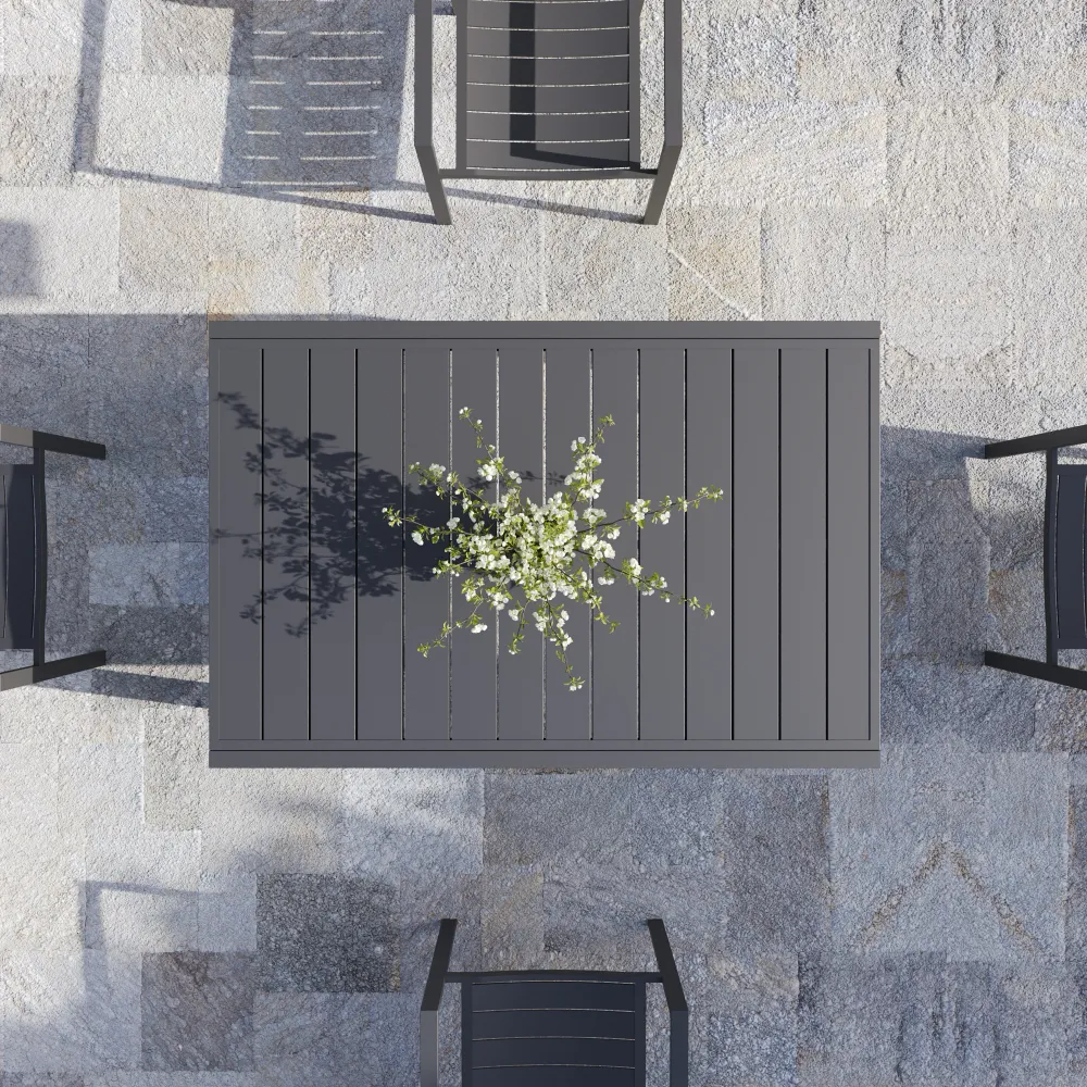 Tavolo da esterno rettangolare in alluminio grigio scuro allungabile 135/270x90xh74cm con top a doghe | Marel