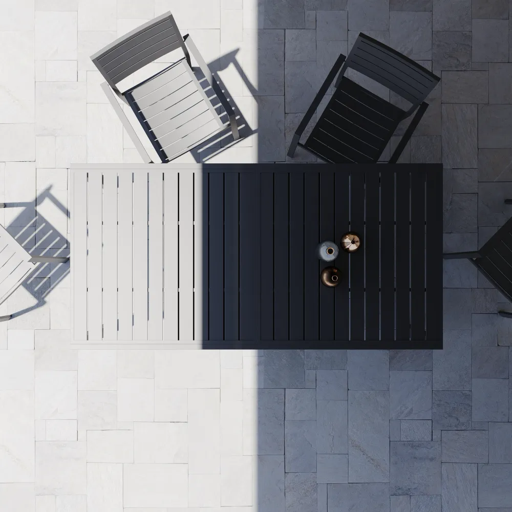 Tavolo da esterno rettangolare in alluminio grigio scuro allungabile 200/300x100x75cm con top a doghe | Marel