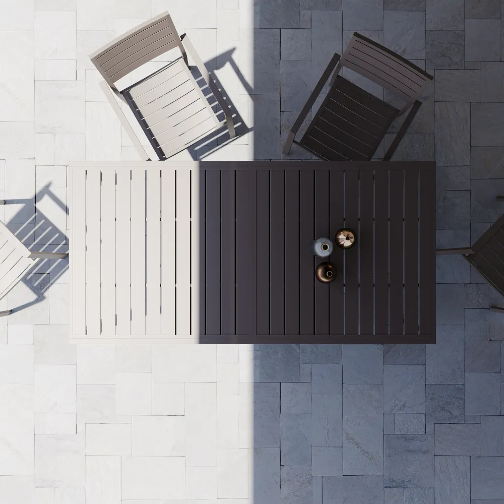 Il tavolo Marel è pensato per chi vuole vivere l'esterno senza compromessi, unendo la praticità di un tavolo compatto alla libertà di accogliere grandi compagnie. La sua vera forza risiede in un sistema di apertura che trasforma l'estetica in pura funzionalità, permettendoti di passare da una dimensione intima di 200 cm a una spaziosa tavolata da 300 cm capace di ospitare fino a 12 persone, il tutto senza alcuno sforzo.