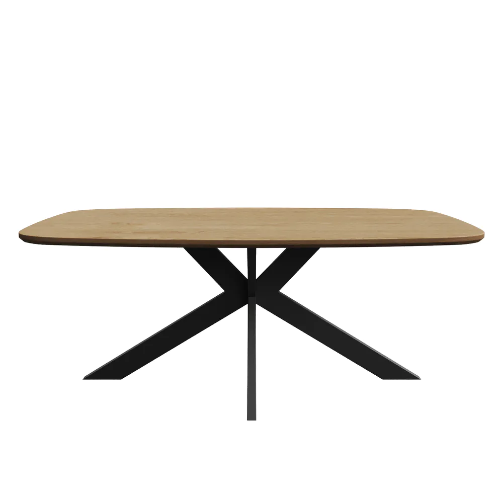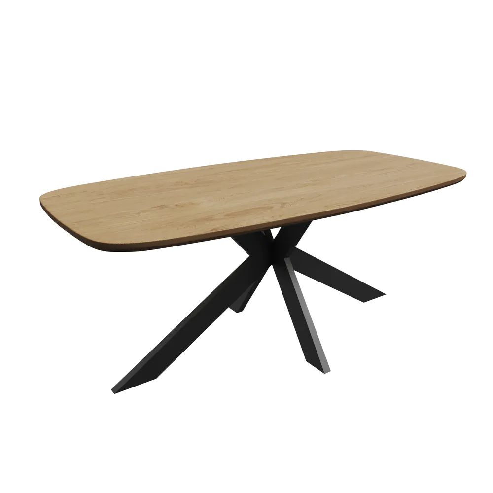 Tavolo ovale 200x100cm top in MDF effetto rovere chiaro e gambe in acciaio incrociate nero | Tove