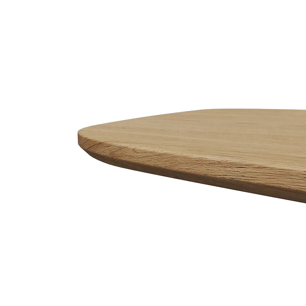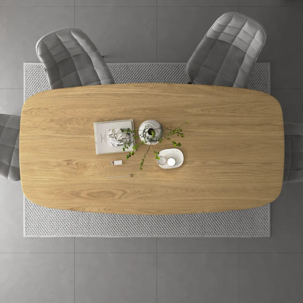 Il tavolo Tove è stato progettato pensando ai momenti di condivisione. La sua forma ovale, con ampie dimensioni di 200x100 cm, elimina gli spigoli, creando un'atmosfera fluida e accogliente. Il piano in MDF con finitura effetto rovere chiaro aggiunge luminosità e un tocco di calore naturale, rendendo l'ambiente subito più invitante.