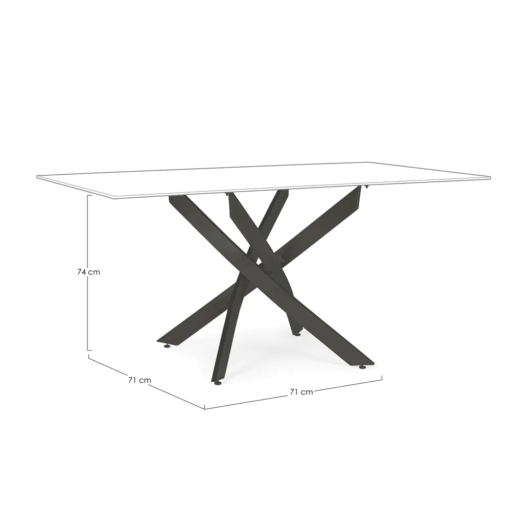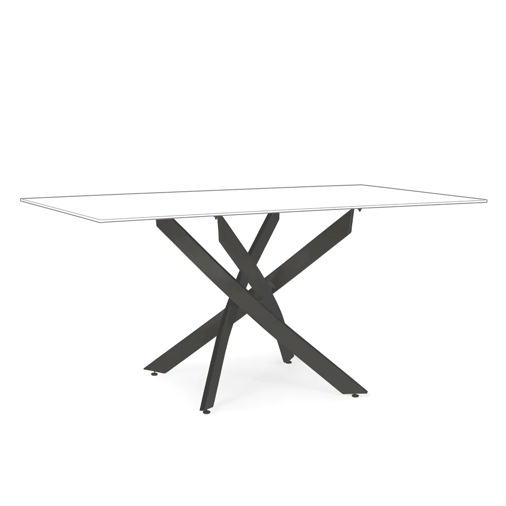 Tavolo rettangolare 160x90cm con top in vetro 8mm trasparente e gambe incrociate in acciaio nero | George