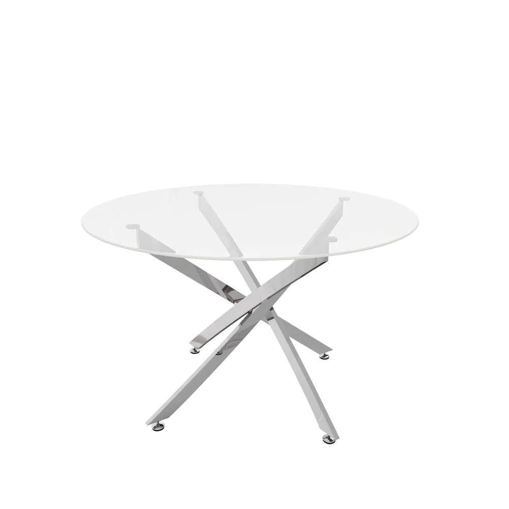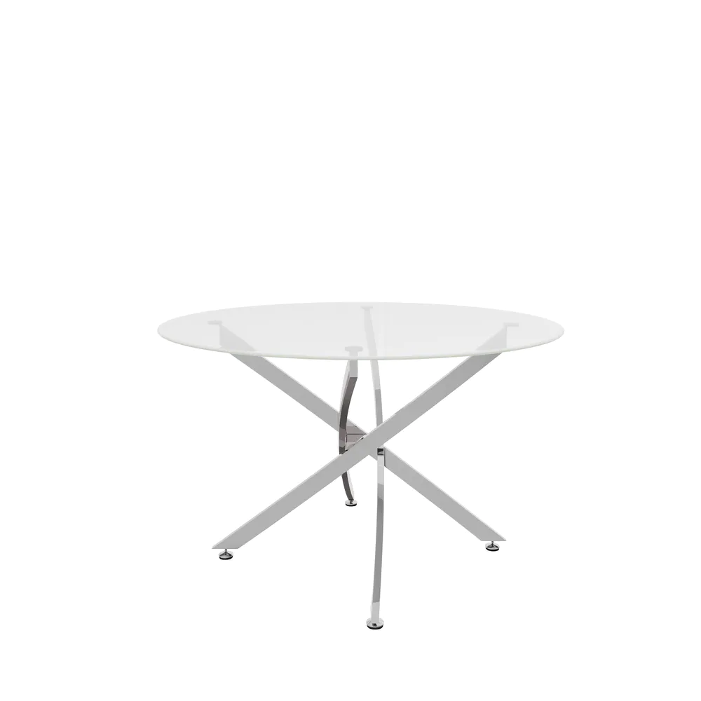 Tavolo rotondo Ø120cm top in vetro temperato trasparente 8mm e gambe incrociate in acciaio cromato | Leif