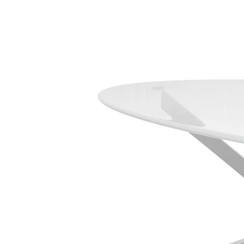 Il tavolo Leif è un vero e proprio statement di design, pensato per chi ama uno stile moderno e d'impatto. Il suo carattere è definito dalla spettacolare base a incrocio, realizzata in acciaio con una brillante finitura cromata che cattura la luce da ogni angolazione. Questa struttura scultorea sostiene con eleganza il piano in vetro trasparente, spesso 8 mm, creando un affascinante gioco di riflessi e trasparenze che illumina l'intera stanza.