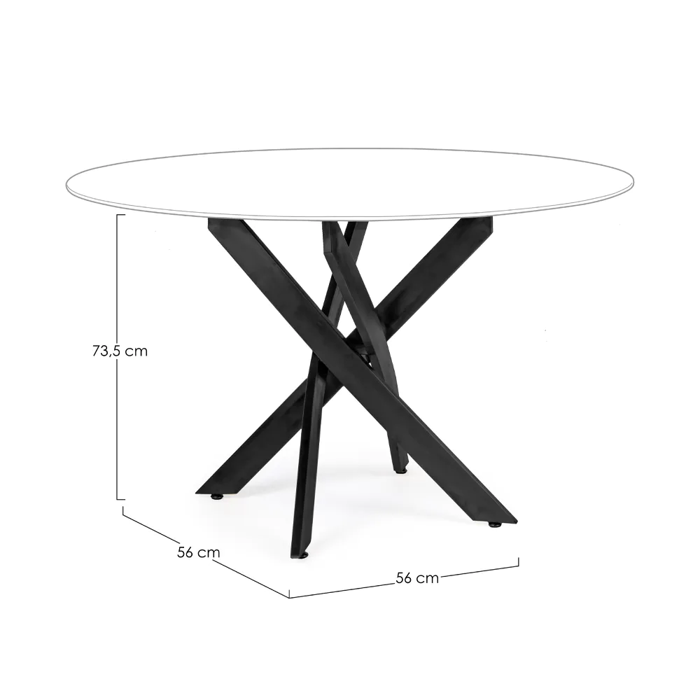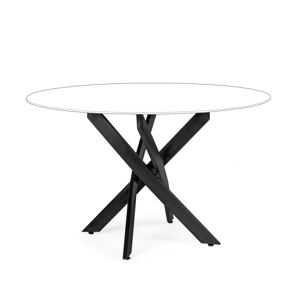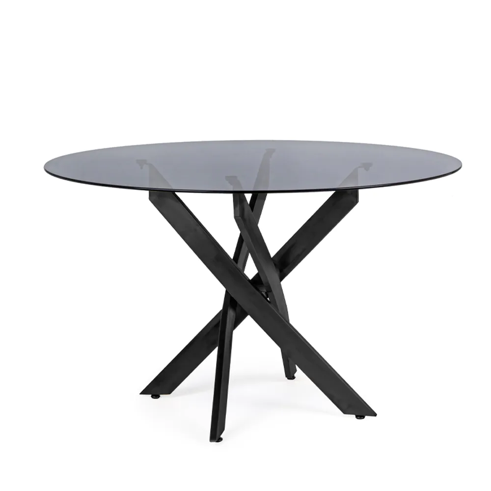 Tavolo tondo ⌀120cm con top in vetro temperato 8mm fumè e gambe incrociate in acciaio nero | George