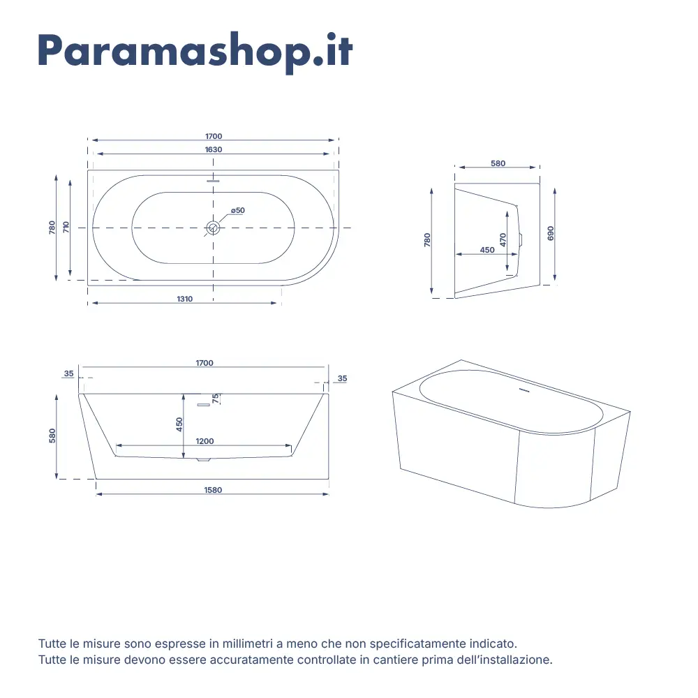 Con le sue dimensioni di 170 cm di lunghezza e 58 cm di altezza, Charlotte è perfetta per un bagno moderno dove comfort e stile si incontrano in un equilibrio impeccabile.