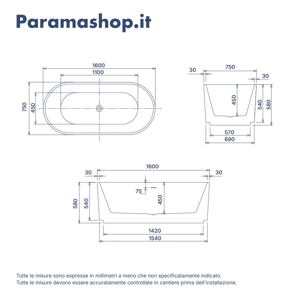 La vasca da bagno mod. Iris è realizzata in acrilico di alta qualità , noto per la sua durata, leggerezza e facilità di pulizia. Il suo splendido rivestimento bianco lucido aggiunge un tocco di eleganza e raffinatezza al vostro spazio bagno, trasformandolo in un'oasi di benessere.