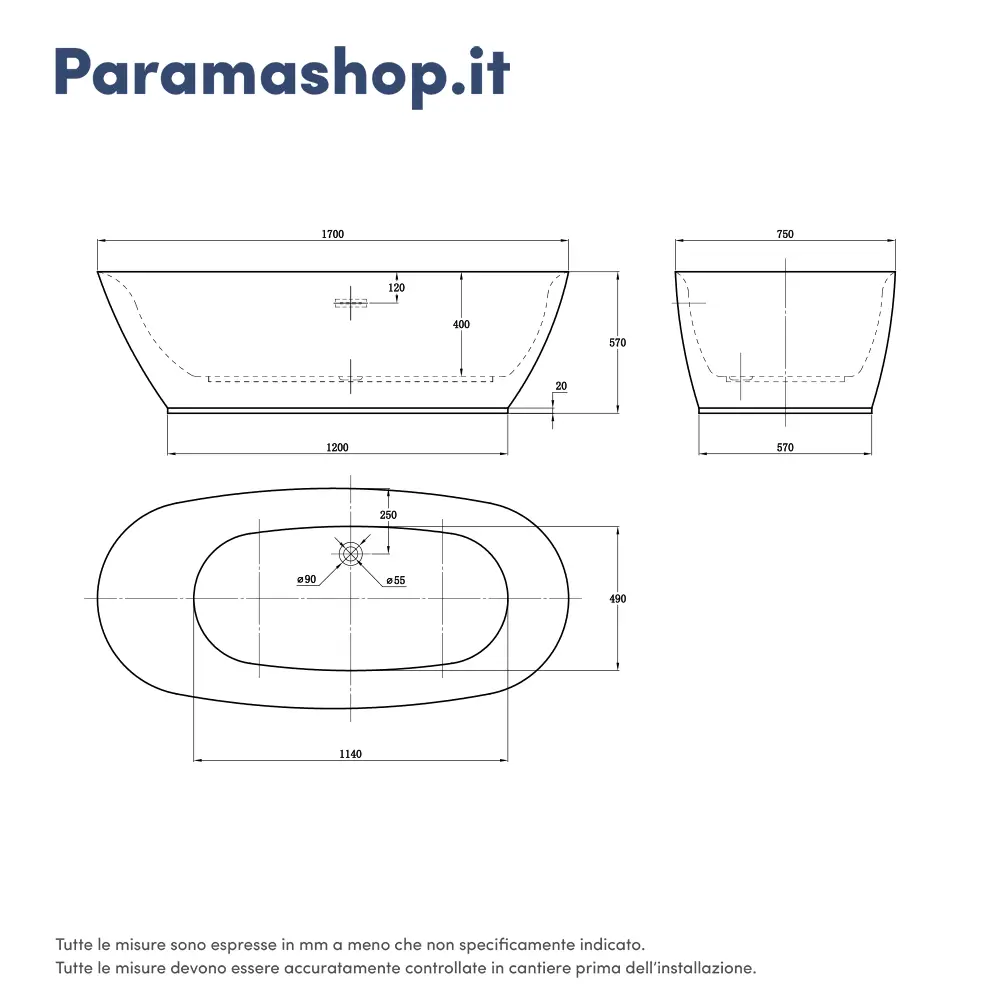 Benvenuti nel mondo del lusso e del relax con la nostra Vasca da Bagno Freestanding in Acrilico Bianco Lucido da 170cm Mod.Margherita!