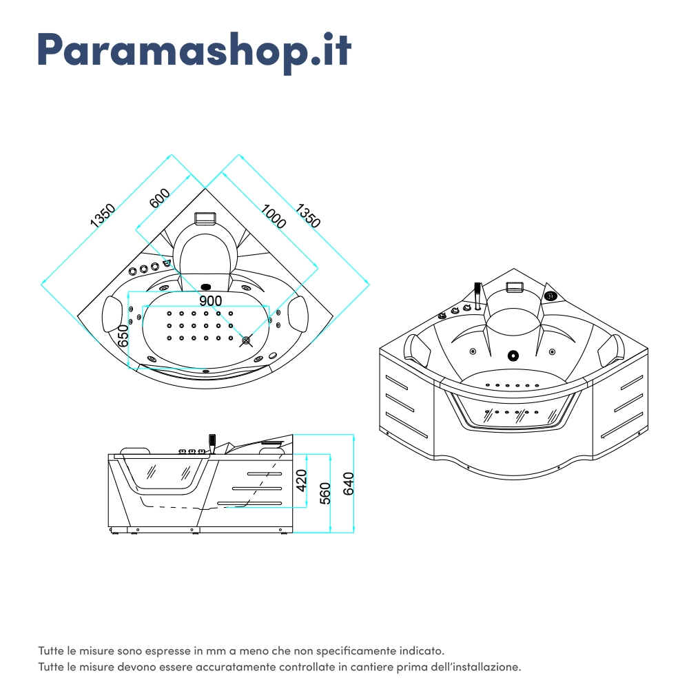 Vasca idromassaggio angolare 135x135 da interno con riscaldamento | Bliss