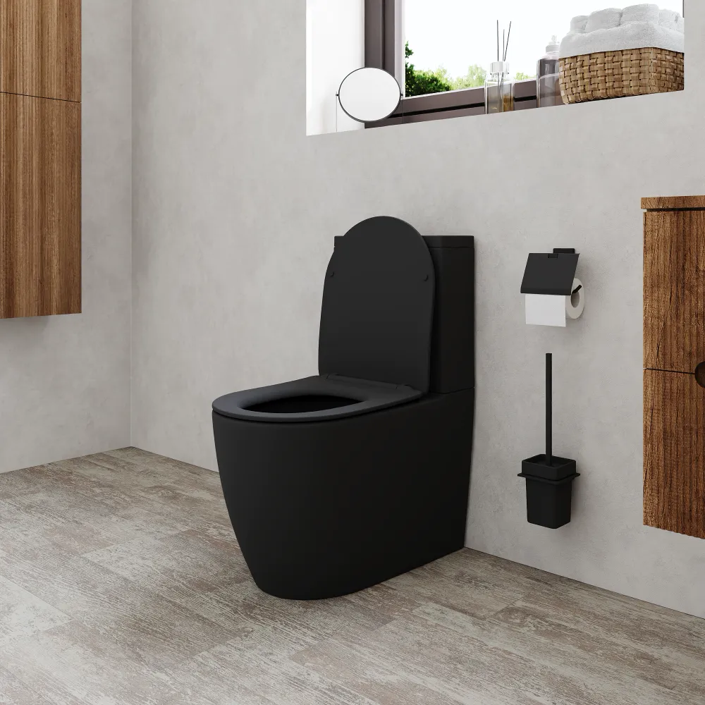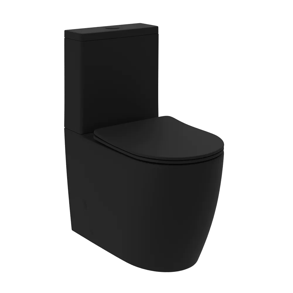 Vaso filomuro monoblocco rimless con cassetta e sedile copri-wc nero opaco | Europa