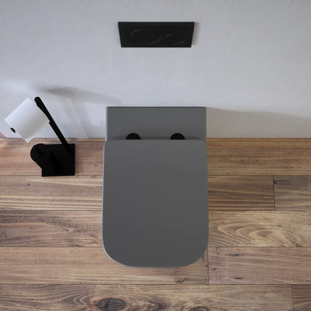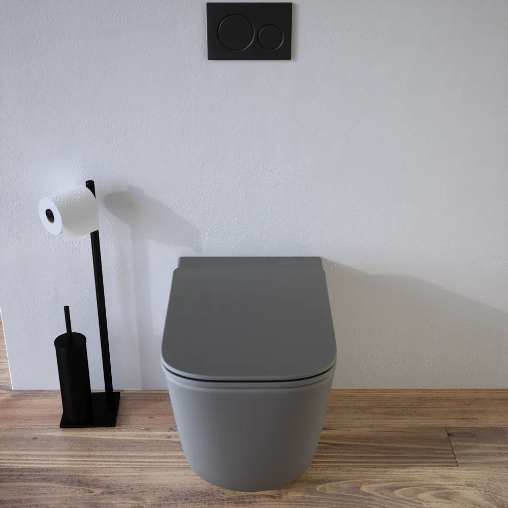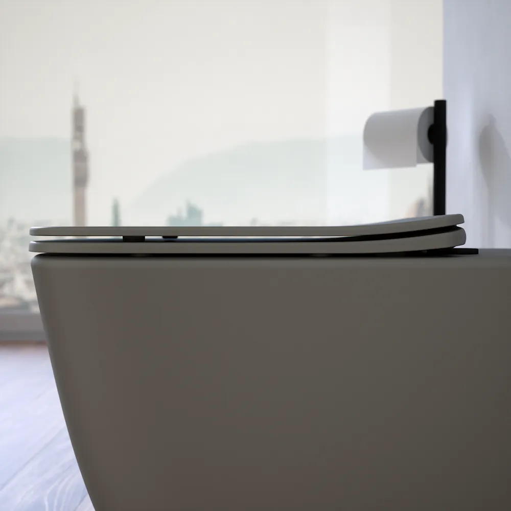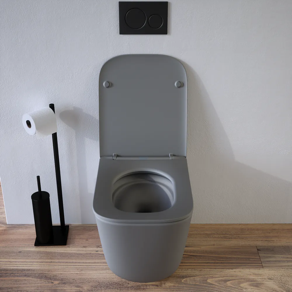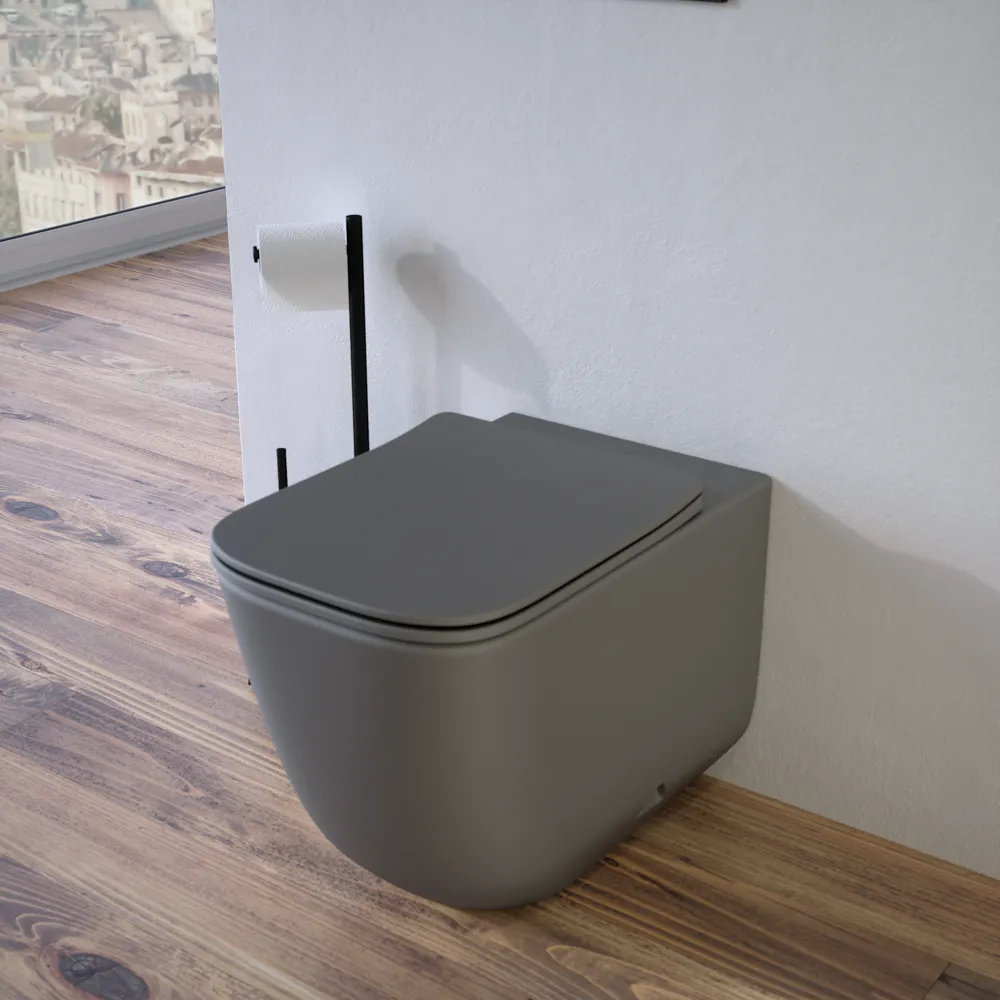 Vaso filomuro tornado silent flush in ceramica grigio opaco con copri-wc soft-close | Riga