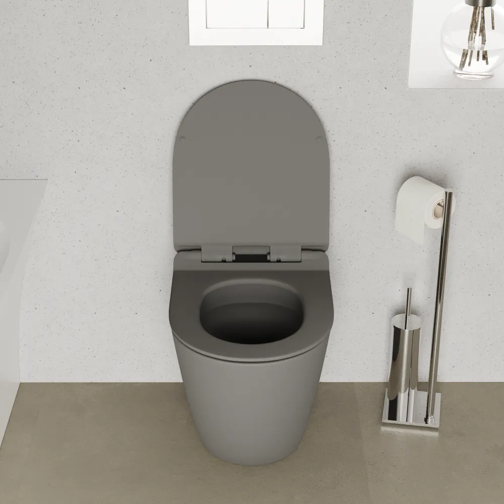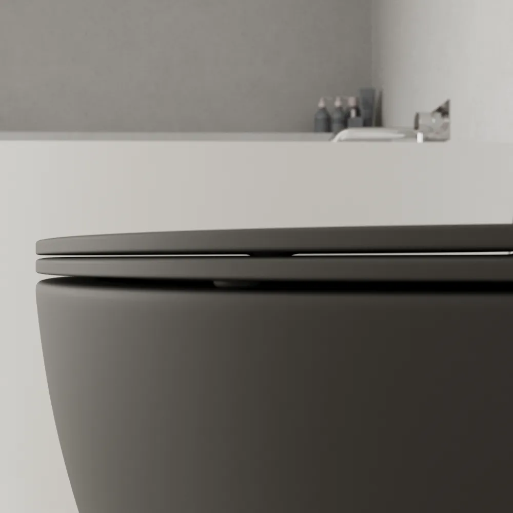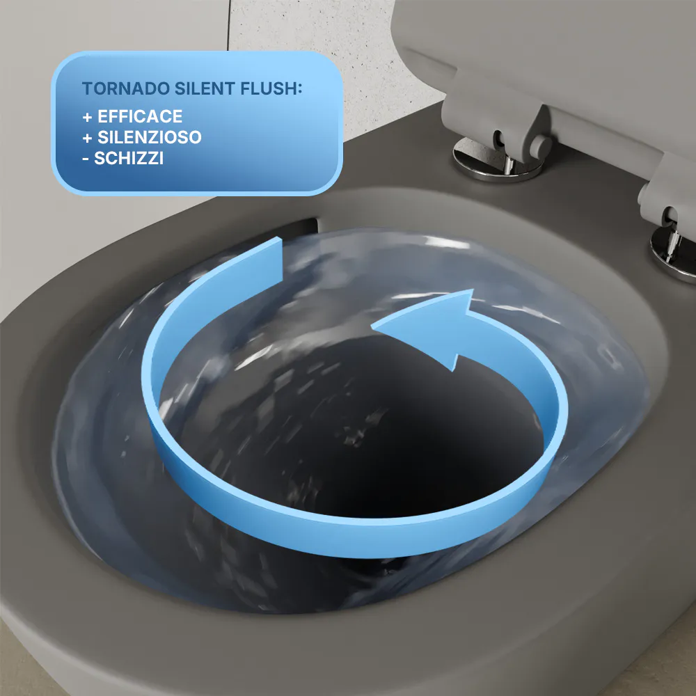 Vaso filomuro tornado silent flush in ceramica grigio opaco con sedile soft-close | Sydney
