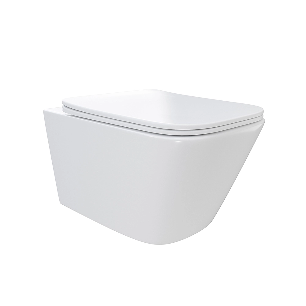 Vaso sospeso rimless in ceramica bianco lucido con sedile soft-close | Kyoto