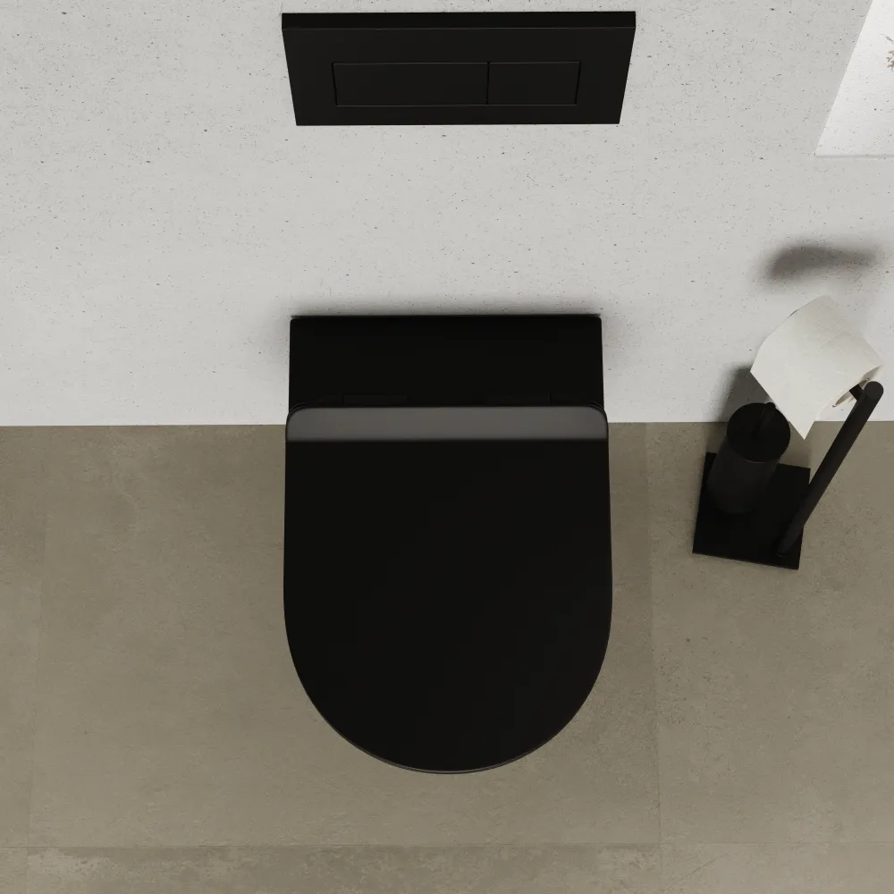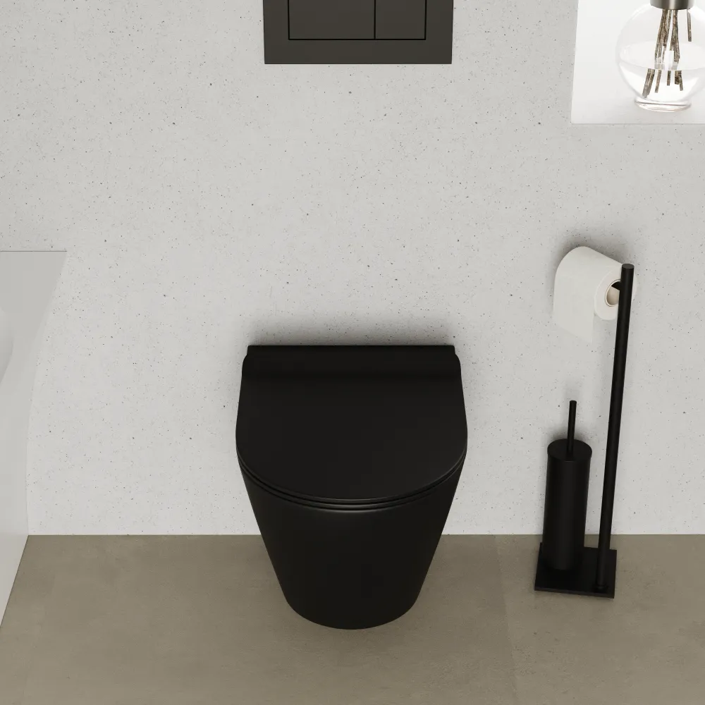 Vaso sospeso rimless in ceramica nero opaco con copri-wc soft-close | Sydney