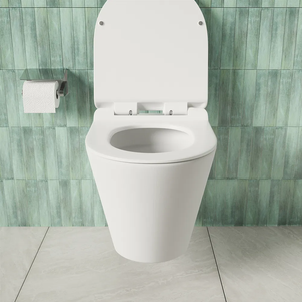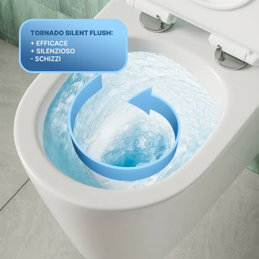 Vaso sospeso tornado silent flush in ceramica bianco lucido con copri-wc soft-close | Rio