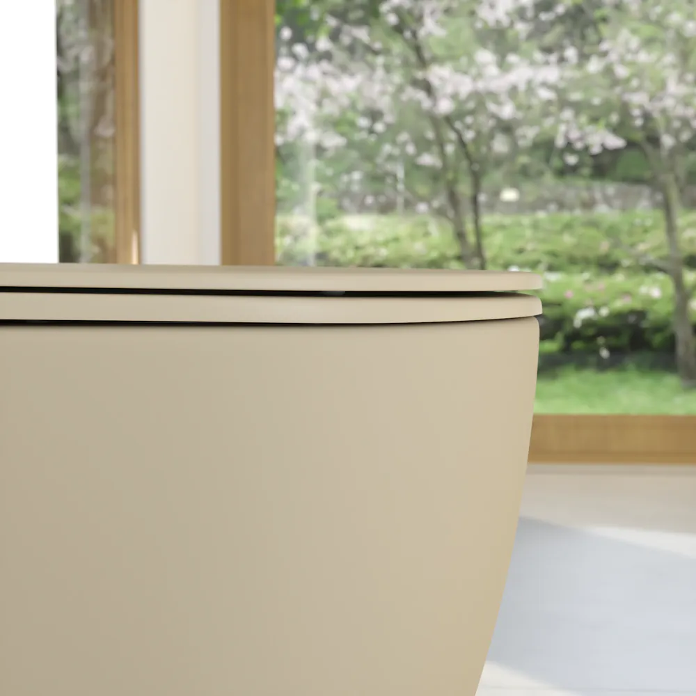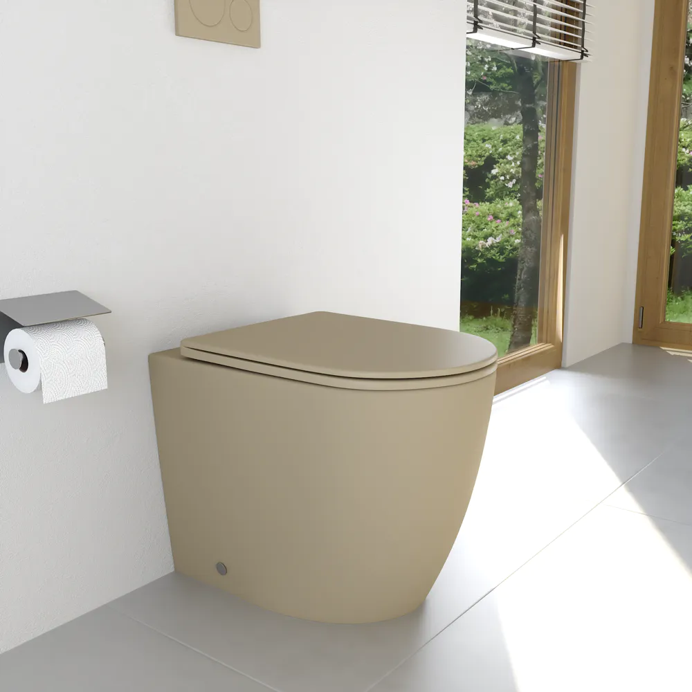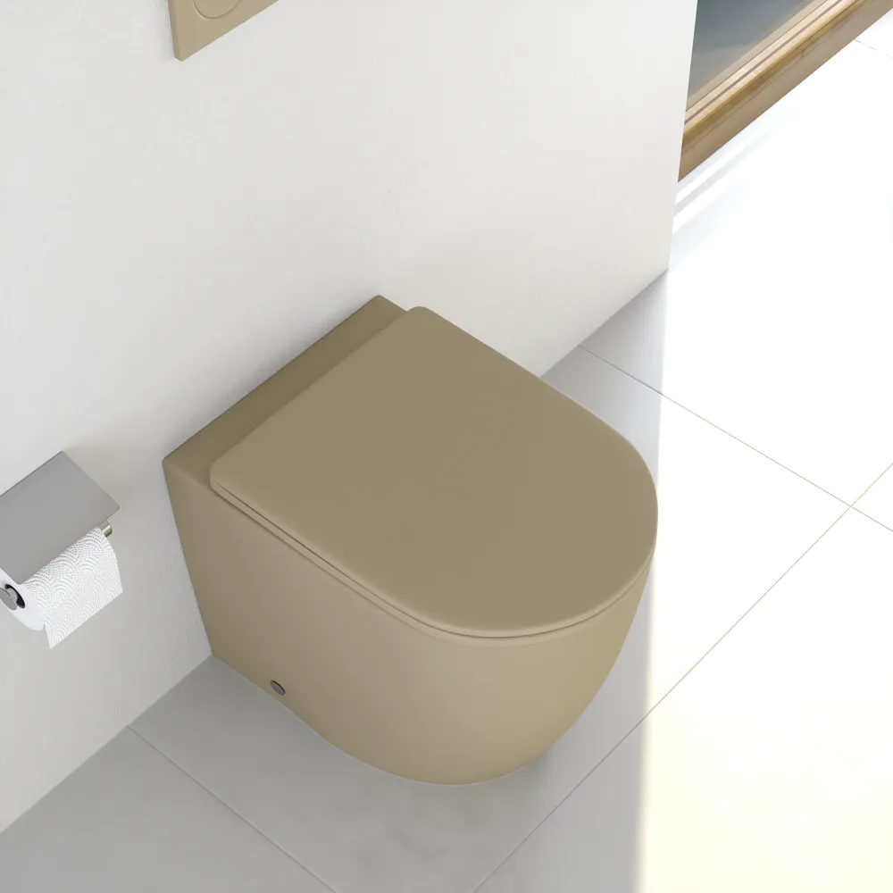 Vaso WC filomuro in ceramica khaki opaco con sedile soft-close | Europa Small