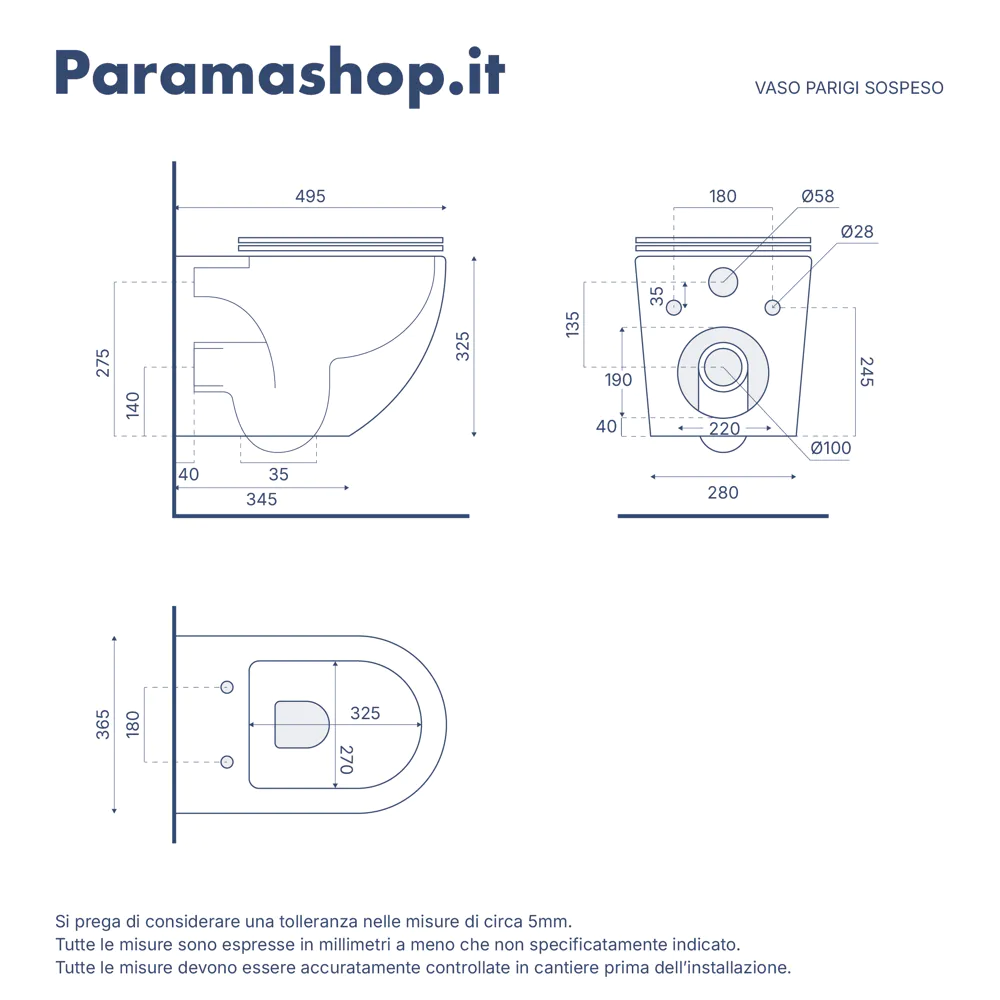 Il vaso WC sospeso mod. Parigi è una soluzione ideale per il tuo bagno moderno o tradizionale, offrendo uno stile contemporaneo con un design tondeggiante molto di moda. Grazie al suo ingombro ridotto di soli 49 cm, questo vaso sospeso rappresenta una soluzione salvaspazio perfetta per bagni di dimensioni limitate.