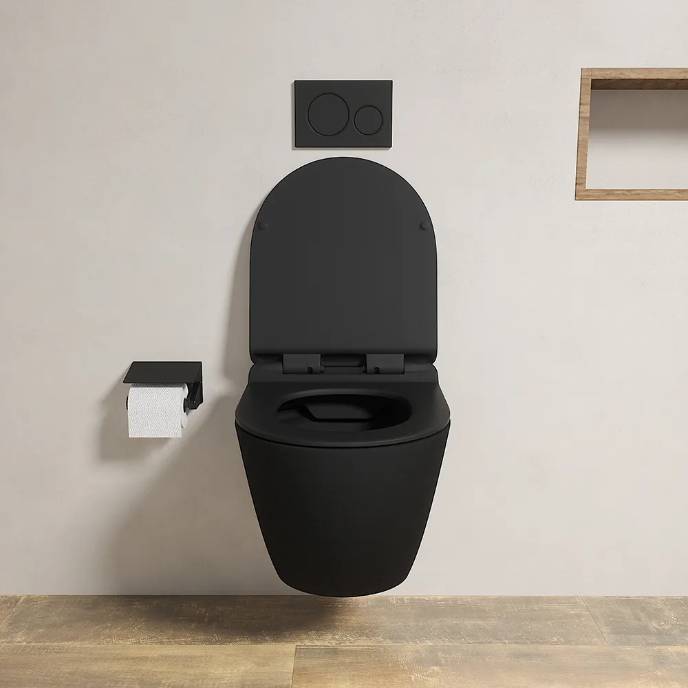 Realizzato con ceramica nero opaca di prima scelta, questo modello garantisce un'elevata qualità e resistenza nel tempo. La ceramica è stata sottoposta a un trattamento nanotecnologico per una rapida eliminazione dei batteri e una pulizia più approfondita. Inoltre, il sistema senza brida (rimless) semplifica la pulizia e assicura un elevato livello di igiene, evitando la formazione di depositi batterici e contribuendo al risparmio idrico durante il risciacquo.